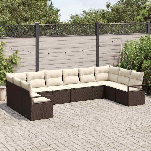 10-teiliges Garten Sofa Set mit Kissen Braun Poly Rattan