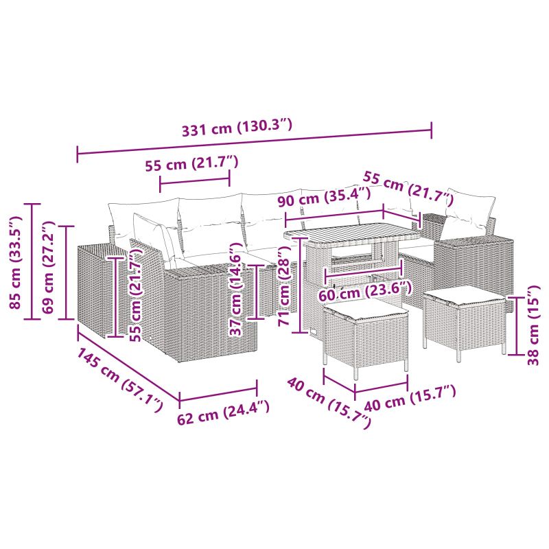 - Lieferumfang: Outdoor-Sofa-Set inklusive Kissen