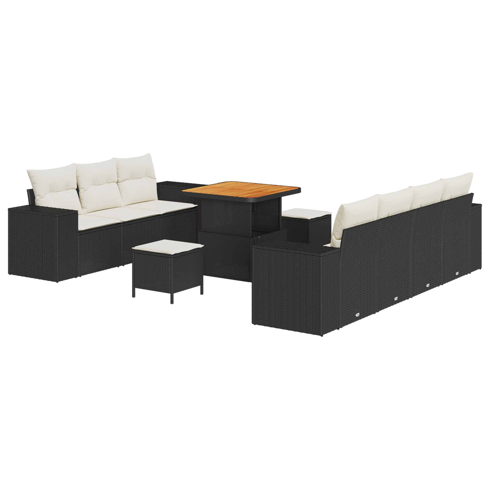 Dieses Garten-Sofa-Set ist eine großartige Ergänzung für Außenbereiche und verbindet Eleganz mit Komfort. Das moderne Design hat einen lässigen Stil und ist gleichzeitig praktisch, was es zur perfekten Wahl für Patios, Gärten oder Balkone macht. Luxuriöser Komfort: Die weichen, cremeweißen Sitzkissen bieten ein angenehmes Sitzgefühl bei Treffen oder beim Entspannen, sodass du stundenlang relaxen kannst. Ihr Stoff ist schmutzabweisend und pflegeleicht - perfekt für draußen. Robuste Struktur: Hergestellt aus widerstandsfähigem, synthetischem Poly-Rattan garantiert der Rahmen Langlebigkeit gegenüber Witterungseinflüssen, sodass du lange Freude daran hast. Diese Konstruktion ermöglicht ein müheloses Verschieben und bietet stabilen Halt. Genügend Platz: Mit Platz für bis zu sechs Personen ist dieses Set perfekt für Outdoor-Essen oder entspannte Zusammenkünfte mit Freunden und Familie. Schaffe unvergessliche Erlebnisse in deinem Garten mit diesem großzügigen Sitzarrangement. Ästhetisches Design: Das elegante schwarze Finish und die handgewebten Texturen verleihen jedem Außenbereich einen Hauch von Eleganz. Es sind nicht nur Möbel; es ist eine stilvolle Aussage, die deinen Raum aufwertet. Einfache Montage: Dieses Garten-Sofa-Set wird mit einfachen Anweisungen geliefert, die nur minimalen Aufwand beim Aufbau erfordern. Die Montage dauert kaum Zeit, sodass du schnell deinen neuen eleganten Sitzbereich genießen kannst.