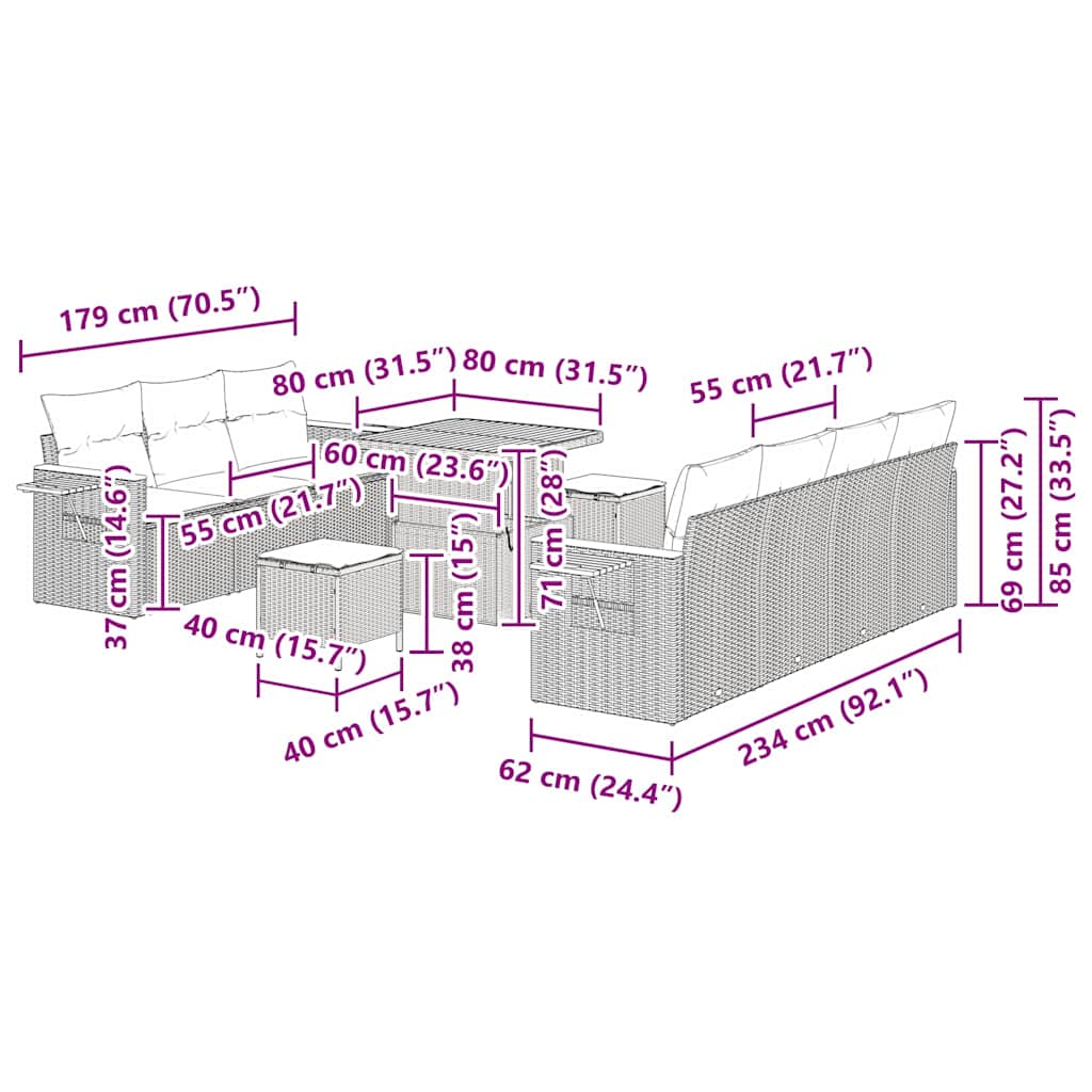 Dieses Garten-Sofaset in trendigem Grau verbindet Stil und Funktionalität, um deinen Außenbereich aufzuwerten. Es ist ideal für Terrassen, Gärten oder Balkone, mit einer modernen Note und bequemen dunklen Kissen, die dich einladen, mit deinen Lieben zu entspannen. Modulare Konfiguration: Du kannst das Sofaset nach Lust und Laune anordnen, was es für jeden Außenbereich flexibel macht. Passe dein Layout an den Style deines Patios oder Gartens an. Langlebiges Rattan-Material: Hergestellt aus hochwertigem synthetischem Rattan, ist dieses Sofa bestens für alle Wetterbedingungen gerüstet und verspricht viele Jahre Freude. Komfortkissen: Jeder Sitz hat flauschige Polyesterkissen mit abnehmbaren Bezügen, die leicht zu reinigen sind und super bequem für sonnige Tage draußen sind. Stylisches Aussehen: Die graue Farbe hebt sein Design hervor und passt problemlos zu verschiedenen Outdoor-Dekoren – ein schicker Akzent für dein Zuhause. Einfach zu pflegen: Dieses Outdoor-Sofaset zu reinigen, ist ein Kinderspiel. Abnehmbare Kissenbezüge können einfach abgewischt werden und die Rattan-Oberfläche kann schnell abgestaubt werden, um toll auszusehen.