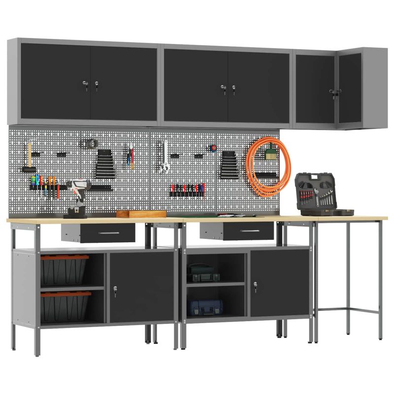 - Lieferumfang: 3x Tisch + 4x Lochblech + 3x Schrank