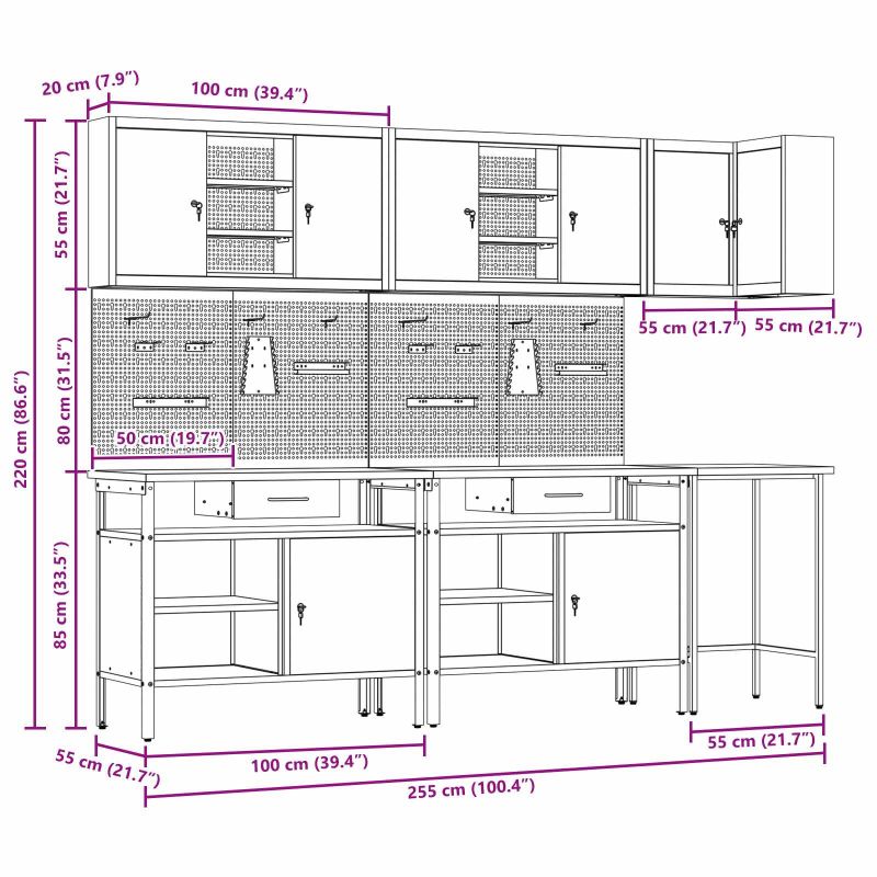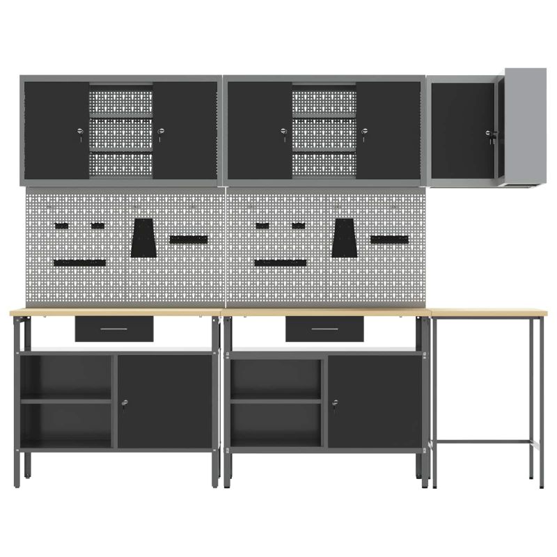 - Lieferumfang: 3x Tisch + 4x Lochplatte + 3x Schrank