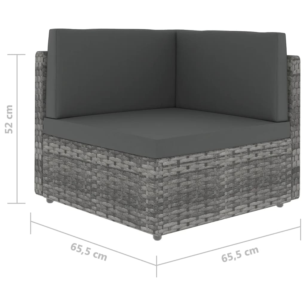 Dieses Garten-Lounge-Set kombiniert Stil und Funktionalität und ist die ideale Wahl, um sich zu entspannen und das Wetter zu genießen, ein Nickerchen zu machen oder mit Ihrer Familie oder Freunden zu plaudern. Dank des witterungsbeständigen PE-Rattans ist das Outdoor-Möbel pflegeleicht, strapazierfähig und alltagstauglich. Es verfügt über einen stabilen pulverbeschichteten Stahlrahmen und ist sehr langlebig. Auf den Couchtisch mit Tischplatte aus gehärtetem Glas können Sie Ihre Bücher, Zeitschriften und Teetassen abstellen und eine beruhigende und entspannende Zeit genießen. Dieses Gartenmöbel-Set ist außerdem leicht und modular, wodurch es vollständig flexibel und leicht an jede Umgebung angepasst werden kann. Die dicken, abnehmbaren Kissen sind weich und bequem. Sie können es mit anderen modularen Segmenten kombinieren, um Ihr persönliches Garten-Lounge-Set zu erstellen! Hinweis: Um die Lebensdauer Ihrer Gartenmöbel zu verlängern, empfehlen wir Ihnen, diese regelmäßig zu reinigen und im Freien vor Niederschlägen oder starken Sonnenstrahlen zu schützen.Reinigung: Verwenden Sie eine milde Seifenlösung.Lagerung: Wenn möglich, an einem kühlen, trockenen Ort im Innenbereich lagern. Wenn das Produkt im Freien gelagert wird, schützen Sie es mit einer wasserdichten Abdeckung. Wischen und trocknen Sie das überschüssige Wasser oder den Schnee nach Regen oder Schneefall von ebenen Flächen. Sorgen Sie für eine ausreichende Luftzirkulation, um feuchtigkeitsbedingte Schäden zu vermeiden.