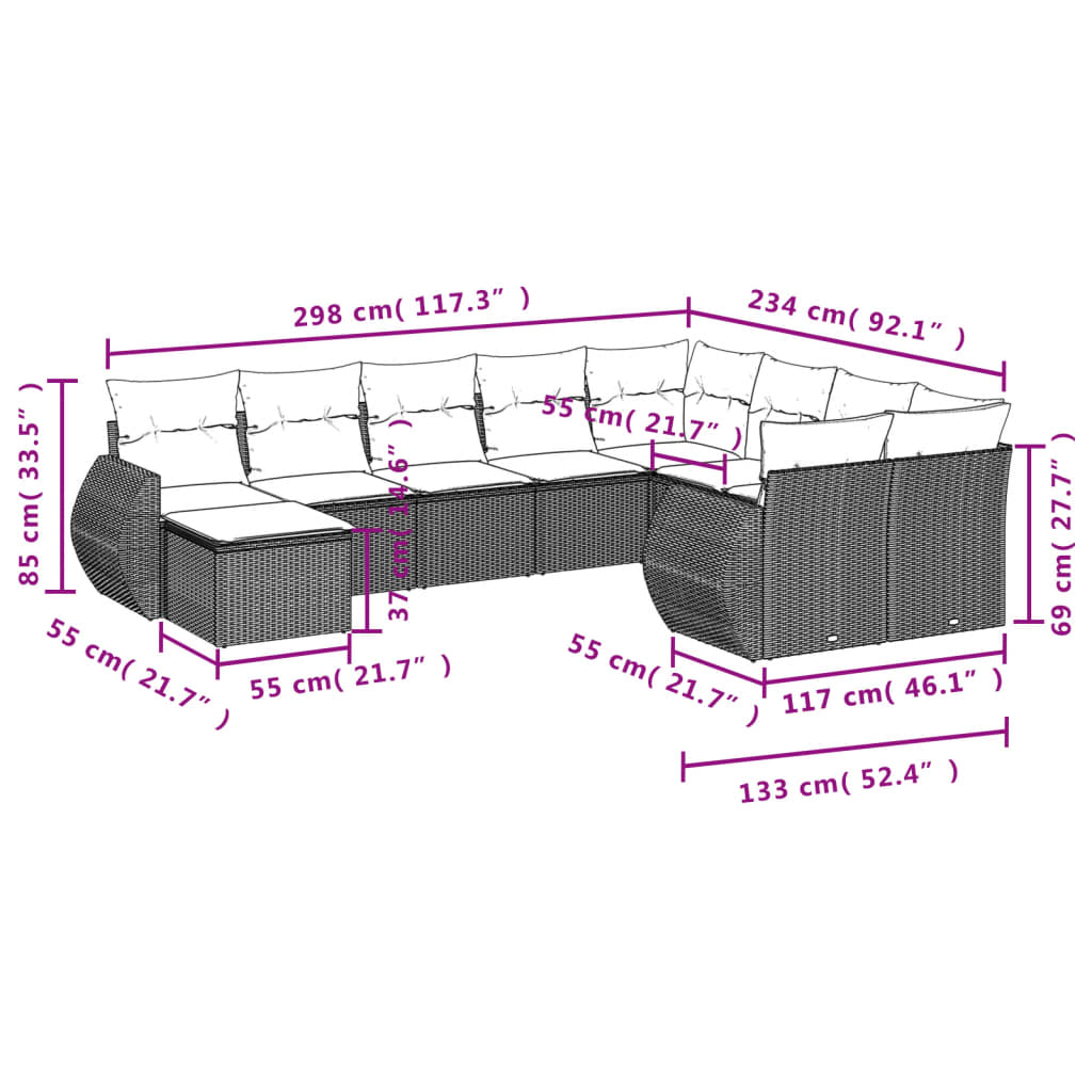 Diese Garten-Sofagarnitur ist die perfekte Ergänzung zu deinem Garten, deiner Terrasse oder deinem Innenhof. Sie bietet einen bequemen und einladenden Platz, um mit Familie und Freunden zu plaudern oder dich einfach nur zu entspannen und das Leben im Freien zu genießen. Langlebiges Material: PE-Rattan, auch als Poly Rattan bekannt, ist ein robustes, pflegeleichtes synthetisches Material, das die Optik von natürlichem Rattan aufweist. Es kennzeichnet sich durch ein geringes Eigengewicht und lässt sich einfach reinigen. Aufgrund seiner Haltbarkeit und Witterungsbeständigkeit wird es häufig bei der Herstellung von Gartenmöbeln verwendet.Stauraum mit wasserfestem Beutel: Jedes Gartensofa verfügt über ein Staufach unter der Sitzfläche, das mit einem wasserfesten Beutel zur Aufbewahrung von Kissen, Spielzeug und anderen Gegenständen versehen ist. Die Kissen sind mit Bezügen versehen und lassen sich mit Klettverschlüssen fest und sicher an den Sofas befestigen.Tischplatte aus Glas: Die Tischplatte des Gartentisches besteht aus starkem und langlebigem Hartglas, sodass sie leicht mit einem feuchten Tuch gereinigt werden kann und deinem Außenbereich einen Hauch von Eleganz verleiht.Abnehmbarer und waschbarer Bezug: Diese Sitzkissen verfügen über abnehmbare Bezüge für einfaches Waschen und Pflegen.Modulares Design: Dank des modularen Designs lassen sich die Gartenmöbel völlig flexibel und einfach umstellen, um deinen Außenbereich ganz individuell zu gestalten. Gut zu wissen:Wir empfehlen dir, deine Gartenmöbel mit einer wasserdichten Hülle zu schützen, um lange Zeit eine ansprechende Optik aufzuweisen.