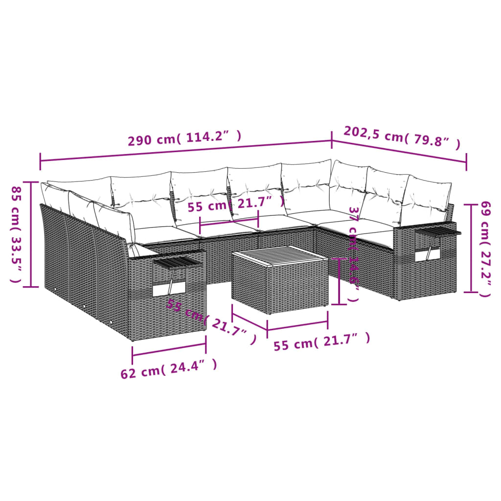 10-tlg. Garten-Sofagarnitur mit Kissen Beige Poly Rattan