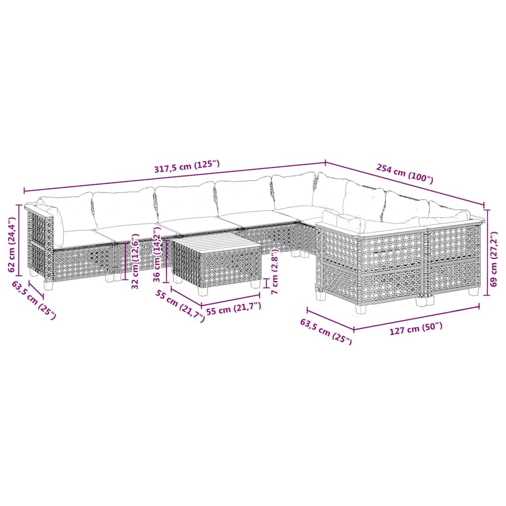 10-tlg. Garten-Sofagarnitur mit Kissen Beige Poly Rattan