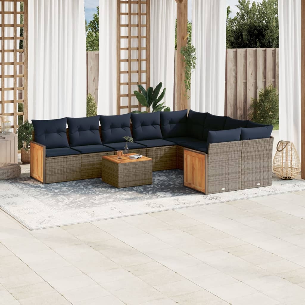 10-tlg. Garten-Sofagarnitur mit Kissen Grau Poly Rattan