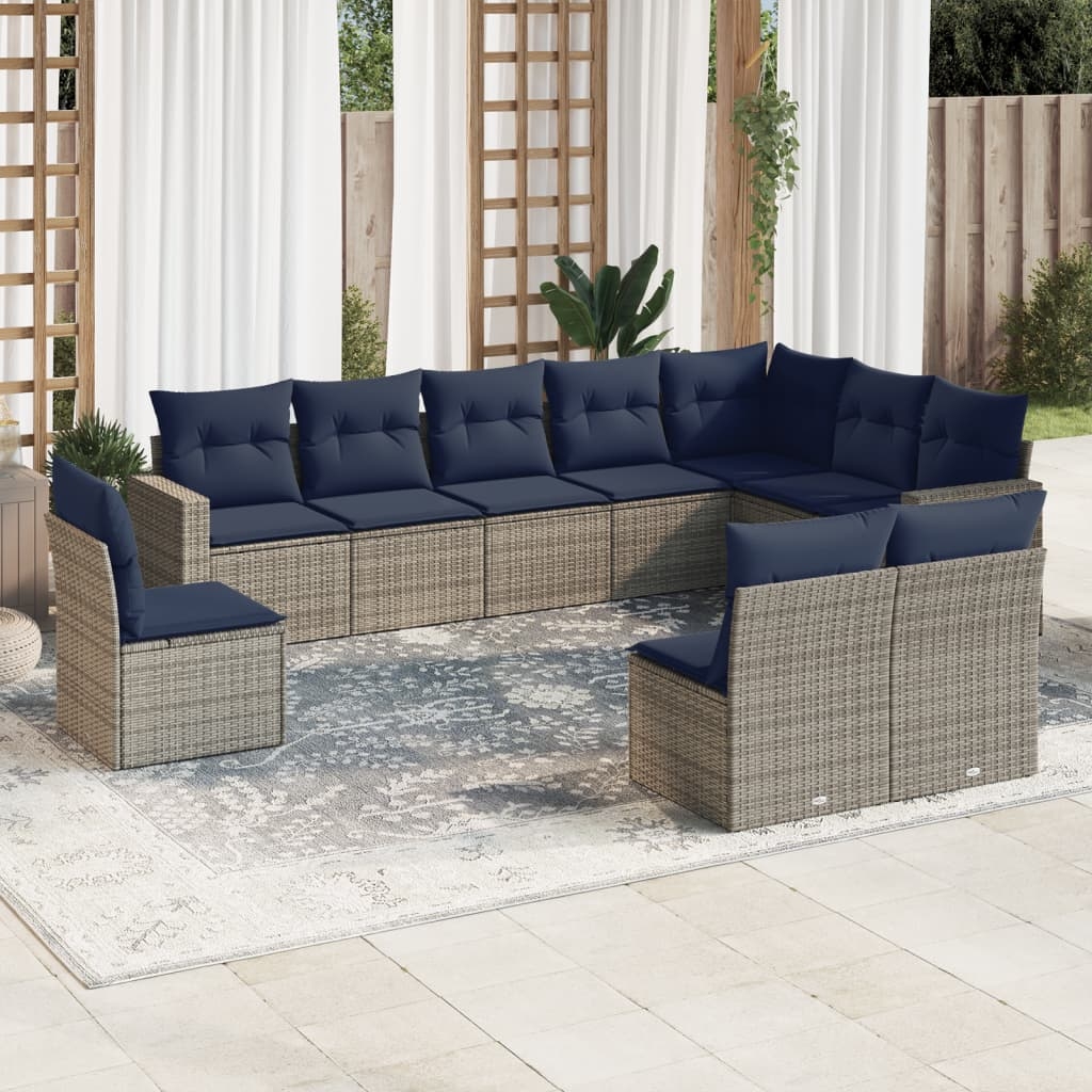Diese Garten-Sofagarnitur ist die perfekte Ergänzung zu deinem Garten, deiner Terrasse oder deinem Innenhof. Sie bietet einen bequemen und einladenden Platz, um mit Familie und Freunden zu plaudern oder dich einfach nur zu entspannen und das Leben im Freien zu genießen. Langlebiges Material: PE-Rattan, auch als Poly Rattan bekannt, ist ein robustes, pflegeleichtes synthetisches Material, das die Optik von natürlichem Rattan aufweist. Es kennzeichnet sich durch ein geringes Eigengewicht und lässt sich einfach reinigen. Aufgrund seiner Haltbarkeit und Witterungsbeständigkeit wird es häufig bei der Herstellung von Gartenmöbeln verwendet.Stauraum mit wasserfestem Beutel: Jedes Gartensofa verfügt über ein Staufach unter der Sitzfläche, das mit einem wasserfesten Beutel zur Aufbewahrung von Kissen, Spielzeug und anderen Gegenständen versehen ist. Die Kissen sind mit Bezügen versehen und lassen sich mit Klettverschlüssen fest und sicher an den Sofas befestigen.Bequemes Sitzerlebnis: Dieser Gartensessel mit dick gepolsterten Kissen bietet ein angenehmes Sitzgefühl.Abnehmbarer und waschbarer Bezug: Diese Sitzkissen verfügen über abnehmbare Bezüge für einfaches Waschen und Pflegen.Modulares Design: Dank des modularen Designs lassen sich die Gartenmöbel völlig flexibel und einfach umstellen, um deinen Außenbereich ganz individuell zu gestalten. Gut zu wissen:Wir empfehlen dir, deine Gartenmöbel mit einer wasserdichten Hülle zu schützen, um lange Zeit eine ansprechende Optik aufzuweisen.