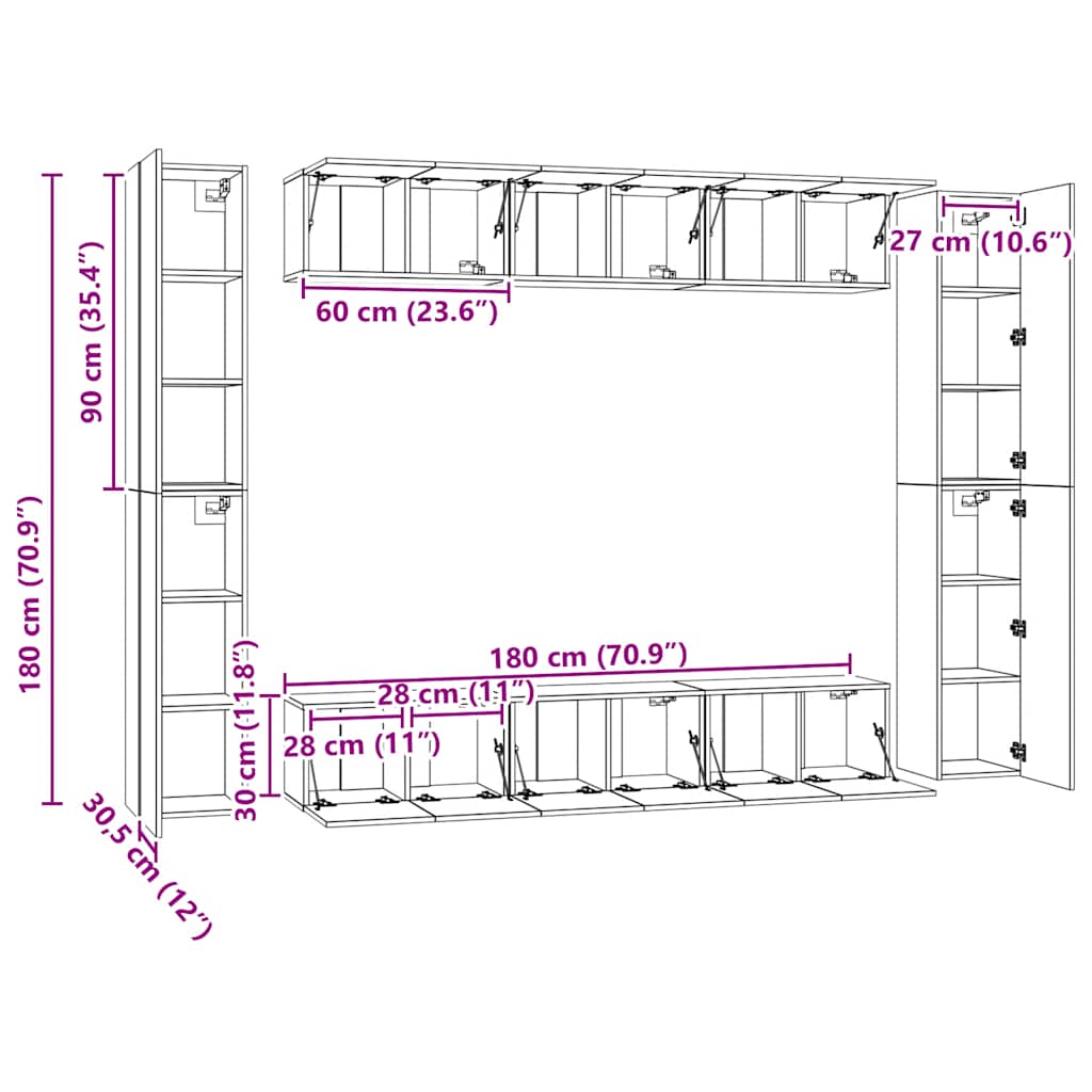 Dieses klassische TV-Schrank-Set wird mit seinem trendigen und dennoch praktischen Design zum Mittelpunkt deines Wohnzimmers. Robustes Material: Holzwerkstoff ist ein Material von außergewöhnlicher Qualität mit glatter Oberfläche, das sich durch Festigkeit, Stabilität und Feuchtigkeitsbeständigkeit auszeichnet.Viel Stauraum: Jeder TV-Schrank bietet reichlich Stauraum, um all deine Zeitschriften, DVDs und andere Gegenstände gut organisiert aufzubewahren.Wandmontage: Die TV-Konsole nimmt keine Bodenfläche ein, da sie sich einfach an der Wand befestigen lässt. Hinweis:Schrauben und Dübel für die Wandbefestigung sind nicht enthalten. Suchen und verwenden Sie die für Ihre Wände geeigneten Schrauben und Dübel. Wenn Sie unsicher sind, suchen Sie professionelle Hilfe. Lesen und befolgen Sie jeden Schritt der Anleitung sorgfältig.Jedes Produkt wird mit einer Montageanleitung in der Verpackung für eine einfache Montage geliefert.