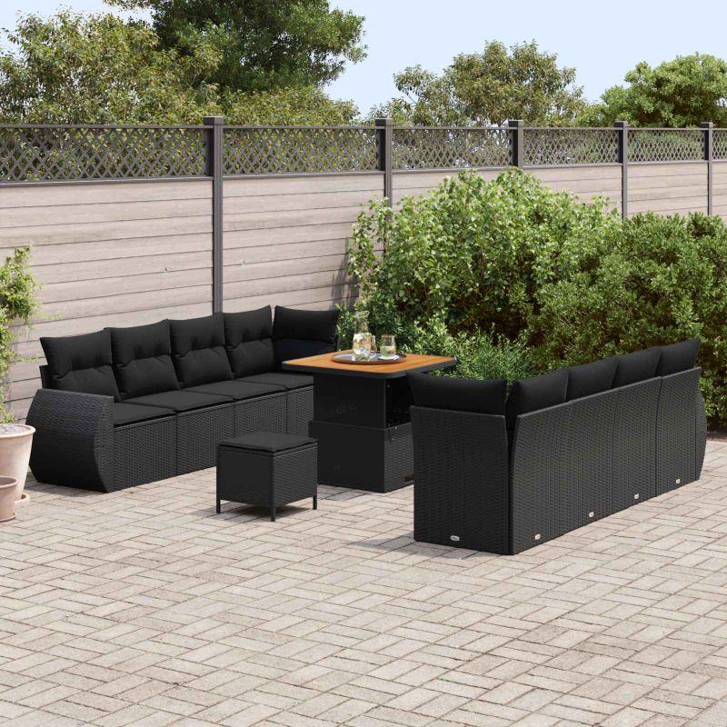 Das Garten-Sofa-Set kombiniert Stil und Komfort perfekt, mit einem modernen Design, das sich super in deinen Außenbereich einfügt. Aus robustem Poly-Rattan gefertigt, peppt es deinen Balkon, Wintergarten oder Terrasse auf und bietet einen gemütlichen Platz zum Entspannen an sonnigen Tagen oder chilligen Abenden. 【Modulares Design】 Mit dem modularen Design kannst du das Sofa nach deinem Belieben anpassen, was super praktisch ist. Jedes Modul ist leicht umzustellen, um eine stylische Anordnung zu schaffen – ob beim Unterhalten von Gästen oder beim Genießen eines entspannten Nachmittags. 【Robuste Materialien】 Hergestellt aus hochwertigem, handgewebtem Poly-Rattan ist dieses Garten-Sofa-Set UV-beständig und stabil genug für jedes Wetter. Es hat auch einen festen Rahmen, damit es auch nach Jahren gut aussieht. 【Bequeme Sitzgelegenheit】 Jeder Sitz hat weiche Kissen aus Outdoor-Stoff für besten Komfort. Sie bieten tollen Halt und sind perfekt für lange Gespräche oder einfach zum Relaxen im Freien. 【Pflegeleicht】 Die Kissen haben Reißverschlüsse für einfache Reinigung. Ein schnelles Abwischen mit einem feuchten Tuch hält dein Set frisch, und die Materialien schützen vor Flecken und Schäden. 【Stylische Optik】 Mit einer schicken matten Oberfläche und stilvollem Geflecht bringt dieses Sofa-Set frischen Wind in jeden Außenbereich. Die Kombination aus schwarzem Poly-Rattan und einem soliden Teakholz Tisch sorgt für einen schicken und modernen Look, der in jedem Einrichtungsstil gut aussieht.