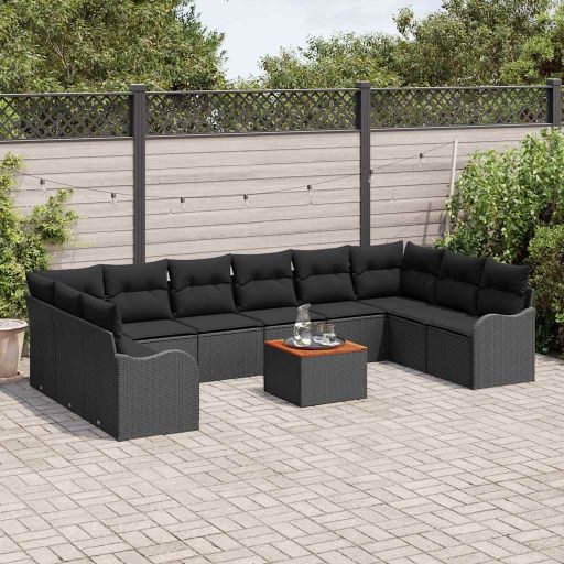 Dieses 11-teilige modulare Garten-Sofa-Set verbindet modernes Design mit praktischer Nutzung und ist ideal zum Relaxen draußen auf Balkonen oder in Gärten. Das schlichte schwarze Design und die handgewebte Optik bringen nicht nur Style, sondern auch Komfort und verwandeln jeden Außenbereich in einen angenehmen Ort. Das große Sofa hat viel Platz zum Sitzen, perfekt für die Zeit mit Freunden und Familie. Vielseitige Sitzgelegenheiten: Das Sofa-Set hat Platz für 6 Leute, super für gesellige Runden oder entspannte Nachmittage. Modulares Design: Mit dem flexiblen Layout und den einstellbaren Füßen kannst du das Set easy an deine Outdoor-Anforderungen anpassen. Wetterfeste Materialien: Aus robustem Poly-Rattan und mit UV-beständigen Kissen bleibt das Set das ganze Jahr über stylish. Elegantes Erscheinungsbild: Das schicke schwarze Design passt modern zu deiner Garteneinrichtung und bringt einen stilvollen Akzent. Umfassendes Set: Das Paket enthält 11 Teile, darunter ein geräumiges Sectional-Sofa und einen Couchtisch, bereit für gesellige Runden.