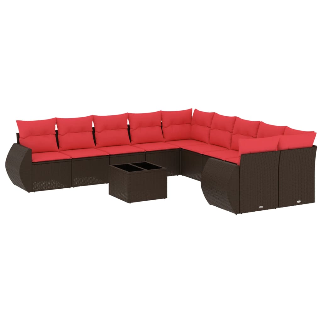 11-teiliges Gartensofa-Set mit Kissen, braun, Polyrattan