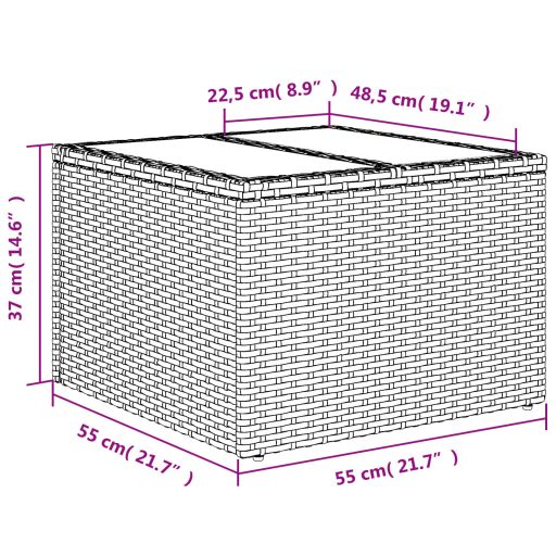 - Material: PE-Rattan, pulverbeschichteter Stahl, gehärtetes Glas