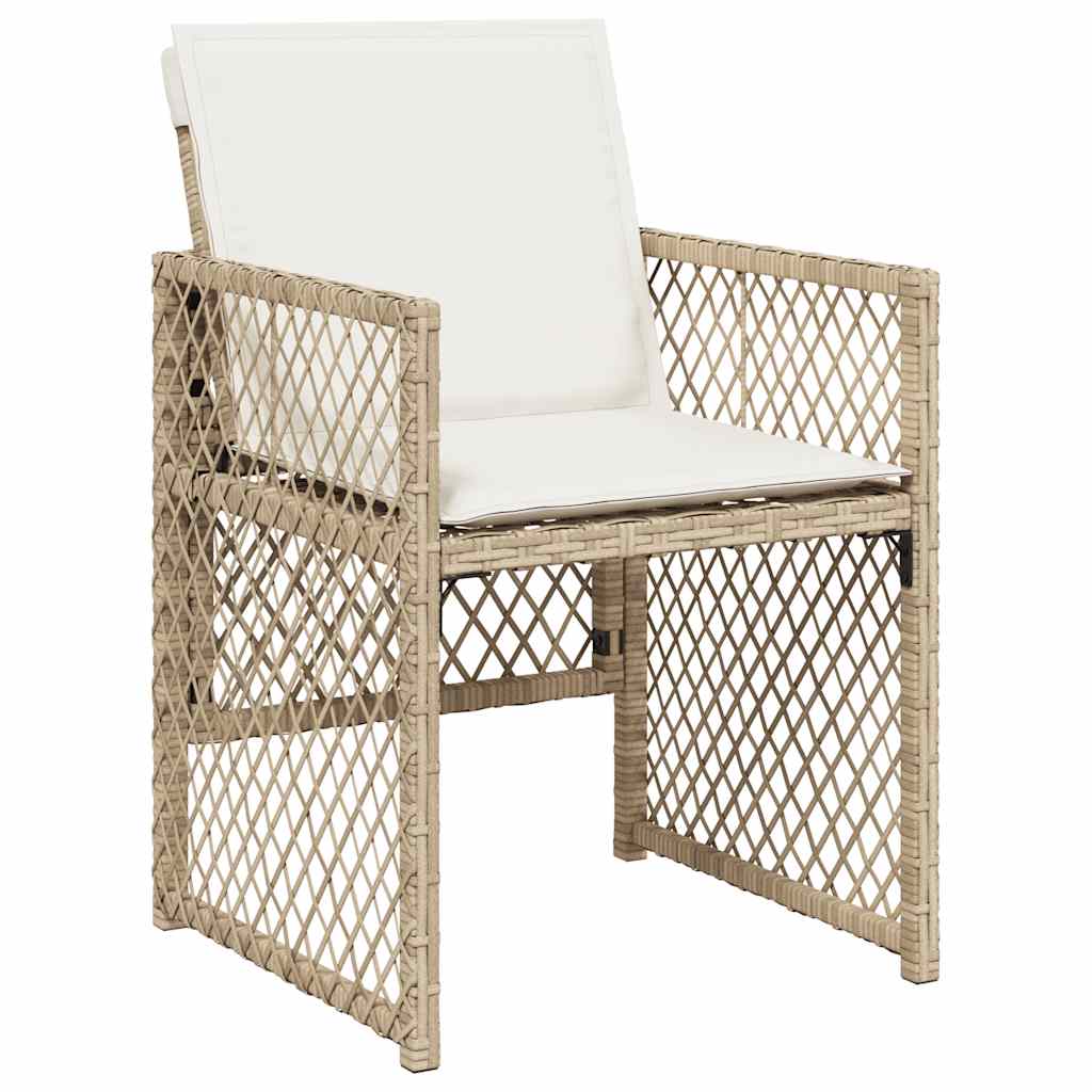 Diese Garten-Essgruppe ist eine ideale Wahl für Mahlzeiten im Freien oder einfach nur zum Entspannen im Garten, Hinterhof oder auf der Terrasse. Langlebiges Material: PE-Rattan, auch als Poly Rattan bekannt, ist ein robustes, pflegeleichtes synthetisches Material, das die Optik von natürlichem Rattan aufweist. Es kennzeichnet sich durch ein geringes Eigengewicht und lässt sich einfach reinigen. Aufgrund seiner Haltbarkeit und Witterungsbeständigkeit wird es häufig bei der Herstellung von Gartenmöbeln verwendet. Stabile und pflegeleichte Tischplatte: Dieser Gartentisch besitzt eine Tischplatte aus Akazienholz, die robust und langlebig ist und sich leicht mit einem feuchten Tuch reinigen lässt. Platzsparende Aufbewahrung: Dank der klappbaren Rückenlehne lassen sich die Stühle unter dem Tisch verstauen. Zudem finden auch die Hocker Platz unter den Stühlen, sodass die gesamte Essgruppe bei Nichtgebrauch eine platzsparende Würfelform bildet, um deinen verfügbaren Platz optimal auszunutzen. Bequemes Sitzerlebnis: Dieser Gartensessel mit dick gepolsterten Kissen bietet ein angenehmes Sitzgefühl. Abnehmbarer und waschbarer Bezug: Die Sitzkissen verfügen über abnehmbare Bezüge, die sich ganz einfach waschen und reinigen lassen. Dank der Klappen an der Rückseite können die Sitzkissen ganz einfach an den Stühlen befestigt werden. Gut zu wissen:Wir empfehlen dir, deine Gartenmöbel mit einer wasserdichten Hülle zu schützen, um lange Zeit eine ansprechende Optik aufzuweisen.