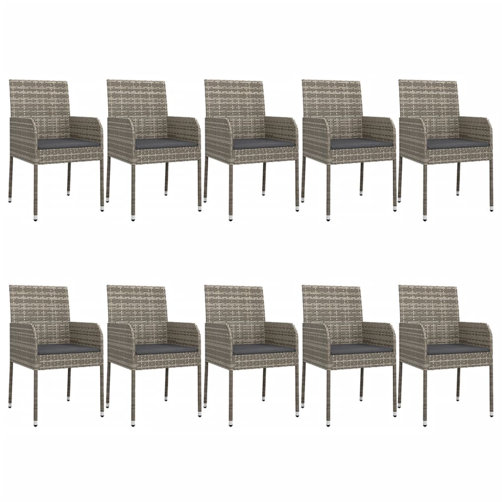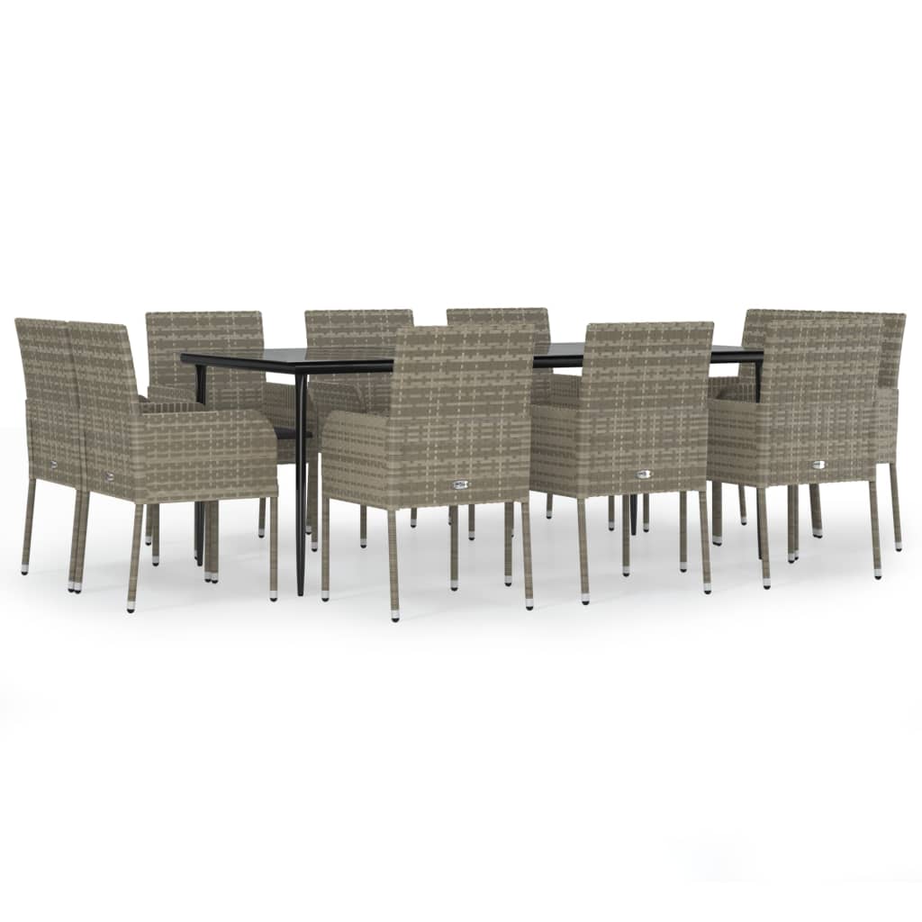 11-tlg. Garten-Essgruppe mit Kissen Schwarz & Grau Poly Rattan