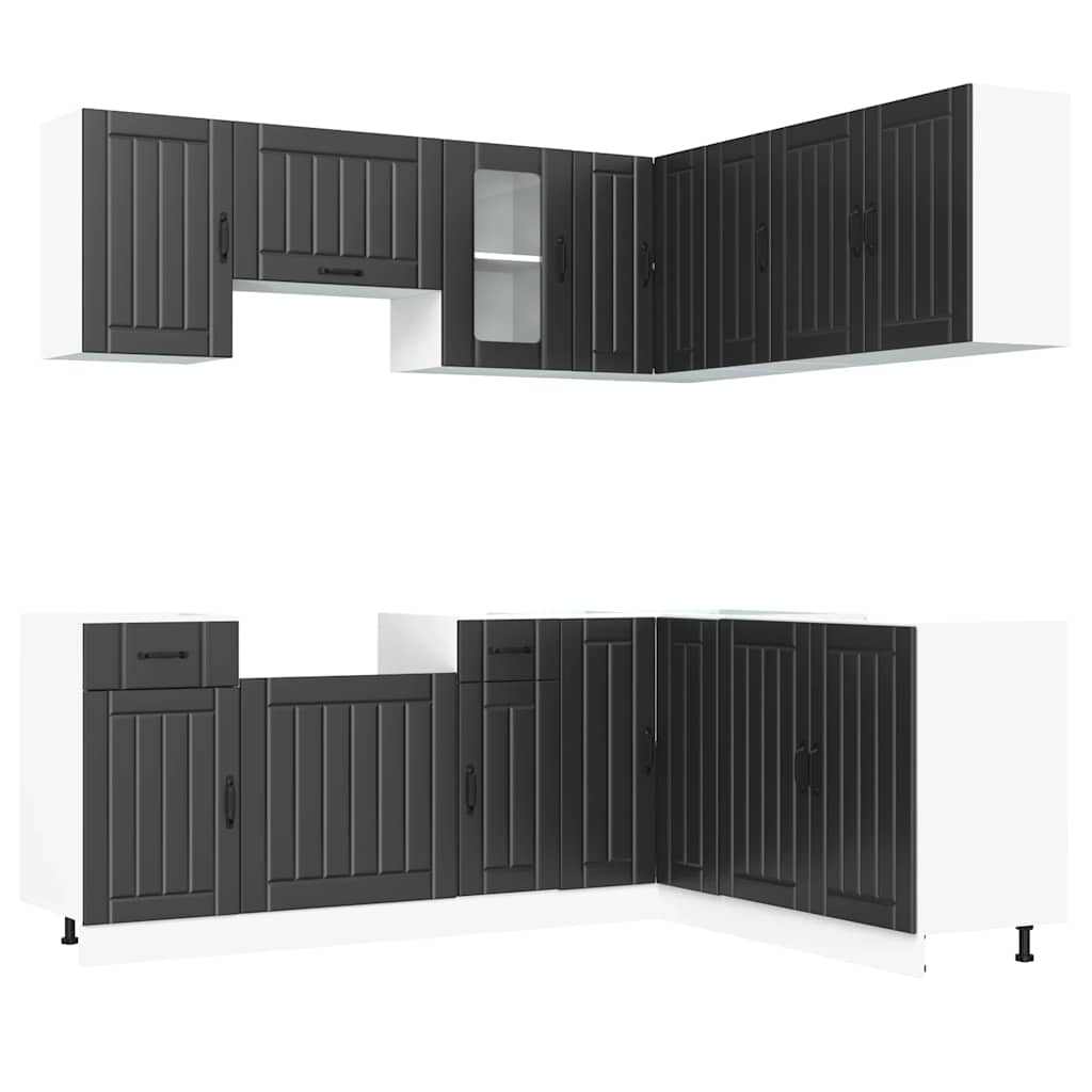Mit ihrem eleganten Design optimiert diese 11-teilige Küchenzeile Ihre Küche und bietet reichlich Stauraum für Ihre Küchenausstattung! Starkes und langlebiges Material: Holzwerkstoff ist ein langlebiges und robustes Material mit einer glatten Oberfläche, das gegen Feuchtigkeit, Verformung und Rissbildung beständig ist, wodurch es eine zuverlässigen Wahl für die Herstellung von Möbeln ist.Viel Stauraum: Das Küchenschrank-Set hat viele Fächer und bietet ausreichend Platz für Schüsseln, Teller, Töpfe und andere Küchengeräte.Verstellbare Füße: Die Unterschränke sind mit verstellbaren Füßen ausgestattet, die sich in der Höhe an deine Kücheneinrichtung anpassen lassen.Pflegeleicht: Dank der glatten Oberfläche lassen sich diese Küchenschränke leicht mit einem feuchten Tuch reinigen und benötigen weniger Pflege. Achtung:Um ein Umkippen zu vermeiden, sollte dieses Produkt mit der mitgelieferten Wandhalterung gesichert werden. Gut zu wissen:Schrauben und Dübel für die Wandbefestigung sind nicht enthalten. Suchen und verwenden Sie die für Ihre Wände geeigneten Schrauben und Dübel. Wenn Sie unsicher sind, suchen Sie professionelle Hilfe. Lesen und befolgen Sie jeden Schritt der Anleitung sorgfältig.Die Arbeitsplatte, das Spülbecken und der Wasserhahn sind nicht im Lieferumfang enthalten.
