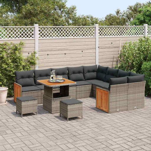Dieses große graue Ecksofa Set bringt Komfort und Style und ist top für Zusammenkünfte oder entspannte Abende in deinem Garten oder auf deiner Terrasse. Mit seinem modernen Design und hochwertigen Materialien bringt dieses Sofa Set frischen Wind in deinen Außenbereich und bietet viel Platz für Familie und Freunde, damit ihr die Zeit draußen genießen könnt. Platz für fünf, damit alle bequem entspannen und unterhalten können. UV-beständige Materialien halten die Farben frisch und langlebig, selbst nach viel Sonnenschein. Jedes Kissen hat einen praktischen Reißverschluss für einfaches Reinigen und Pflegen. Der robuste, pulverbeschichtete synthetische Rattanrahmen sorgt für Langlebigkeit und lässt sich leicht bewegen. Der Couchtisch ist super praktisch für Drinks und Snacks und sorgt für zusätzlichen Komfort während der Zusammenkünfte.