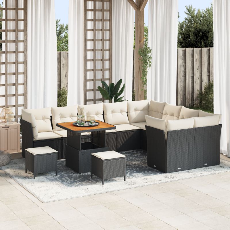 Das 12-teilige Garten Sofa Set mit Kissen ist eine tolle Ergänzung für deine Außen- oder Innenräume, gestaltet für Komfort und Stil. Mit dem modularen Design und handgewebter Verarbeitung hast du viel Platz für gesellige Runden auf deiner Terrasse, deinem Balkon oder im Garten – Entspannung macht hier richtig Spaß. Modulare Konfiguration: Du kannst das Sofa so umstellen, dass es perfekt in deinen Raum passt, und es ist flexibel für verschiedene Outdoor-Events. So schaffst du den idealen Lounge-Bereich. Handgewebte Konstruktion: Mit Liebe hergestellt, macht die handgewebte Struktur den Look dieses Sofa-Sets besonders und fügt deinem Garten oder deinem Zuhause eine künstlerische Note hinzu. Genieße hochwertige, natürliche Materialien mit modernem Flair. Bequeme Sitzgelegenheiten: Mit weichen Kissen sorgt das Set für gemütliche Plätzchen bei langen Gesprächen, egal ob bei Grillpartys oder beim Chillen. Wetterfeste Materialien: Das Sofa ist aus wasserfestem Poly-Rattan gefertigt, bleibt also hübsch und haltbar bei verschiedenen Wetterbedingungen und übersteht die Jahreszeiten. Einfache Pflege: Du kannst die Kissen leicht abnehmen und reinigen, damit sie frisch bleiben. Einfach mit einem feuchten Tuch abwischen, fertig.
