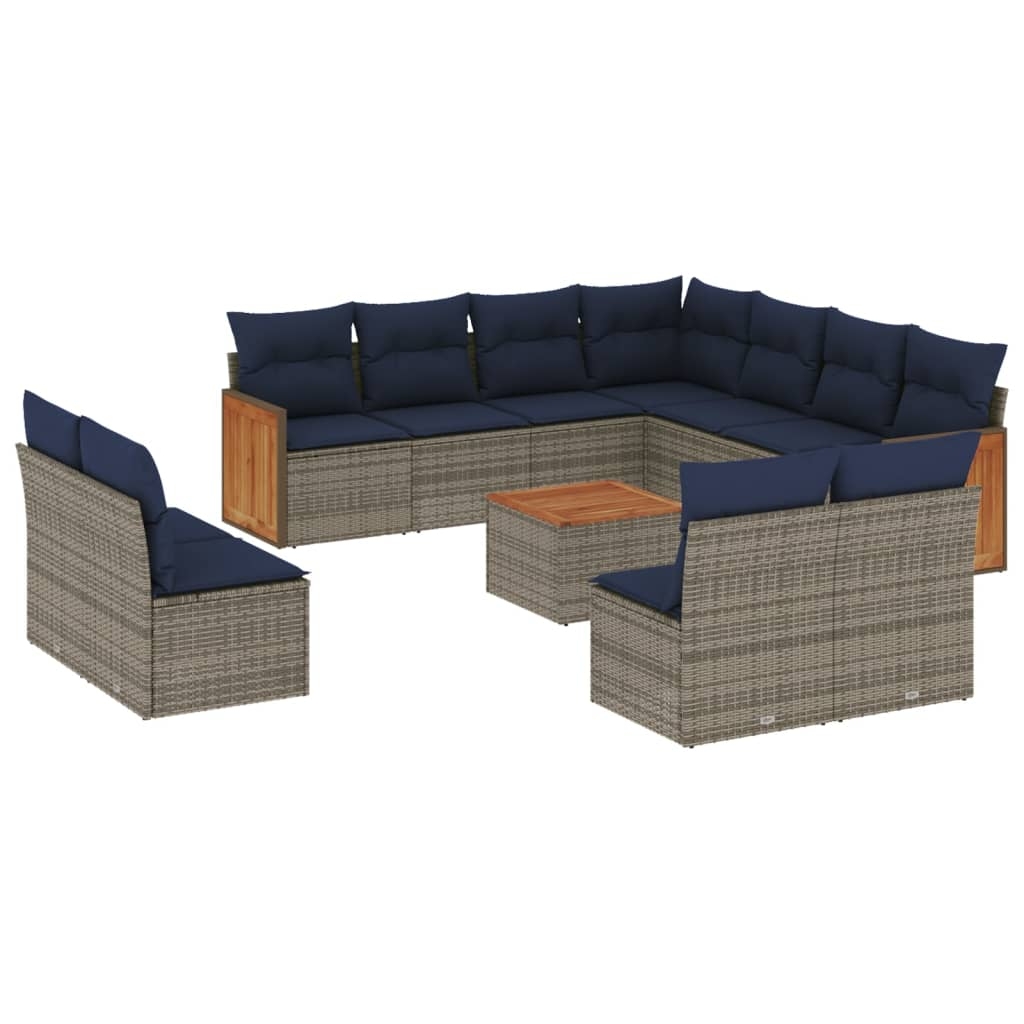 Diese Garten-Sofagarnitur ist die perfekte Ergänzung zu deinem Garten, deiner Terrasse oder deinem Innenhof. Sie bietet einen bequemen und einladenden Platz, um mit Familie und Freunden zu plaudern oder dich einfach nur zu entspannen und das Leben im Freien zu genießen. Langlebiges Material: PE-Rattan, auch als Poly Rattan bekannt, ist ein robustes, pflegeleichtes synthetisches Material, das die Optik von natürlichem Rattan aufweist. Es kennzeichnet sich durch ein geringes Eigengewicht und lässt sich einfach reinigen. Aufgrund seiner Haltbarkeit und Witterungsbeständigkeit wird es häufig bei der Herstellung von Gartenmöbeln verwendet.Stauraum mit wasserfestem Beutel: Das Gartensofa verfügen über ein Staufach unter der Sitzfläche, das mit einem wasserfesten Beutel zur Aufbewahrung von Kissen, Spielzeug und anderen Gegenständen versehen ist. Der Innenbeutel lässt sich mit Klettverschlüssen sicher und stabil an den Gartenmöbeln befestigen.Stabile und pflegeleichte Tischplatte: Dieser Gartentisch besitzt eine Tischplatte aus Akazienholz, die robust und langlebig ist und sich leicht mit einem feuchten Tuch reinigen lässt.Abnehmbarer und waschbarer Bezug: Diese Sitzkissen verfügen über abnehmbare Bezüge für einfaches Waschen und Pflegen.Modulares Design: Dank des modularen Designs lassen sich die Gartenmöbel völlig flexibel und einfach umstellen, um deinen Außenbereich ganz individuell zu gestalten. Gut zu wissen:Wir empfehlen dir, deine Gartenmöbel mit einer wasserdichten Hülle zu schützen, um lange Zeit eine ansprechende Optik aufzuweisen.