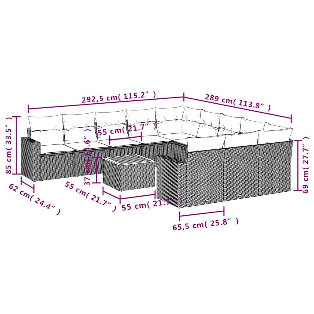 Diese Garten-Sofagarnitur ist die perfekte Ergänzung zu deinem Garten, deiner Terrasse oder deinem Innenhof. Sie bietet einen bequemen und einladenden Platz, um mit Familie und Freunden zu plaudern oder dich einfach nur zu entspannen und das Leben im Freien zu genießen. Langlebiges Material: PE-Rattan, auch als Poly Rattan bekannt, ist ein robustes, pflegeleichtes synthetisches Material, das die Optik von natürlichem Rattan aufweist. Es kennzeichnet sich durch ein geringes Eigengewicht und lässt sich einfach reinigen. Aufgrund seiner Haltbarkeit und Witterungsbeständigkeit wird es häufig bei der Herstellung von Gartenmöbeln verwendet.Stauraum mit wasserfestem Beutel: Jedes Gartensofa verfügt über ein Staufach unter der Sitzfläche, das mit einem wasserfesten Beutel zur Aufbewahrung von Kissen, Spielzeug und anderen Gegenständen versehen ist. Die Kissen sind mit Bezügen versehen und lassen sich mit Klettverschlüssen fest und sicher an den Sofas befestigen.Stabile und pflegeleichte Tischplatte: Dieser Gartentisch besitzt eine Tischplatte aus Akazienholz, die robust und langlebig ist und sich leicht mit einem feuchten Tuch reinigen lässt.Abnehmbarer und waschbarer Bezug: Diese Sitzkissen verfügen über abnehmbare Bezüge für einfaches Waschen und Pflegen.Modulares Design: Dank des modularen Designs lassen sich die Gartenmöbel völlig flexibel und einfach umstellen, um deinen Außenbereich ganz individuell zu gestalten. Gut zu wissen:Wir empfehlen dir, deine Gartenmöbel mit einer wasserdichten Hülle zu schützen, um lange Zeit eine ansprechende Optik aufzuweisen.