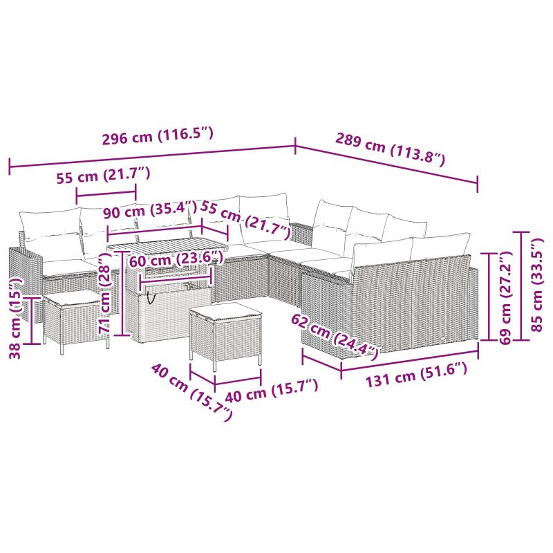 - Lieferumfang: Outdoor Sofa Set inkl. modularer Sofas, Tisch, Hocker und Kissen
