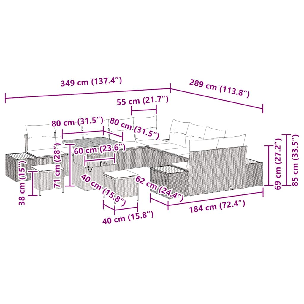 Das 13-teilige Garten Sofa Set bringt modernen Chic in deinen Außenbereich und sorgt für maximalen Komfort. Mit seinem eleganten beige Rattan-Look und den weichen hellgrauen Kissen schaffst du einen einladenden und heimeligen Bereich – super für gesellige Runden oder entspannte Nachmittage. Elegante moderne Ästhetik: Das stylische Design passt super in verschiedene Außenbereiche und ist eine schöne Ergänzung für Gärten, Terrassen und Balkone. Der verwitterte Look verleiht ihm einen rustikalen Charme, der deine Outdoor-Vibes unterstreicht. Ultimativer Komfort: Mit dicken, bequemen Polyester-Sitzkissen bietet dieses Set fantastischen Komfort für lange Zusammenkünfte. Entspanne bei faulen Nachmittagen oder gemütlichen Abenden mit Freunden auf der weichen Unterstützung. Außergewöhnliche Haltbarkeit: Dieses Gartenmöbelset aus hochwertigem natürlichem Rattan trotzt UV-Strahlen und schlechtem Wetter. Die wasserfesten Eigenschaften schützen es vor Feuchtigkeit und sorgen dafür, dass es über Jahre gut aussieht. Viel Platz: Für bis zu acht Personen gemacht, ist dieses modulare Set ideal für große Treffen, Partys oder ruhige Abende unter den Sternen. Sein flexibles Layout passt sich jeder Umgebung an. Einfacher Unterhalt: Mit unkomplizierten Pflegehinweisen bleibt dein Sofa Set in Bestform. Decke es einfach ab, wenn es nicht benötigt wird, und wische die Oberflächen mit einem feuchten Tuch ab für die einfache Reinigung.