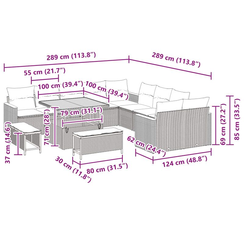 Dieses moderne Outdoor Sofa Set kombiniert Luxus mit Praktikabilität und ist genau das Richtige für jeden Garten oder jede Terrasse. Es bietet bequem Platz für sechs Personen und hat einen schicken, modularen Stil, der das Entspannen und Gesellige im Freien ganz einfach macht. Jedes Teil ist aus robustem, UV-beständigem Poly-Rattan gefertigt, das den Elementen standhält und die stilvollen Akazienholzoberflächen verleihen einen Hauch von Klasse. Die Kissen sind mit hochdichtem Schaum gefüllt und mit abnehmbarem Polyesterstoff bezogen, was die Reinigung einfach macht und gleichzeitig für Komfort sorgt. Der stabile Rahmen aus pulverbeschichtetem Stahl bietet ein solides Set, das bis zu 440 kg tragen kann - für Sicherheit und Zuverlässigkeit ist gesorgt. Das schicke Design hat breite Armlehnen, die ideal zum Ablegen von Dingen sind und macht es perfekt für Zusammenkünfte im Freien. Genieße Familientreffen oder gemütliche Abende mit Freunden in Stil. Das Outdoor Set umfasst 13 Teile und bietet nicht nur bequeme Sitzgelegenheiten, sondern auch einen Couchtisch und Beistelltische, die dir alles bieten, was du zum Unterhalten oder Entspannen in einer stilvollen Sammlung brauchst.