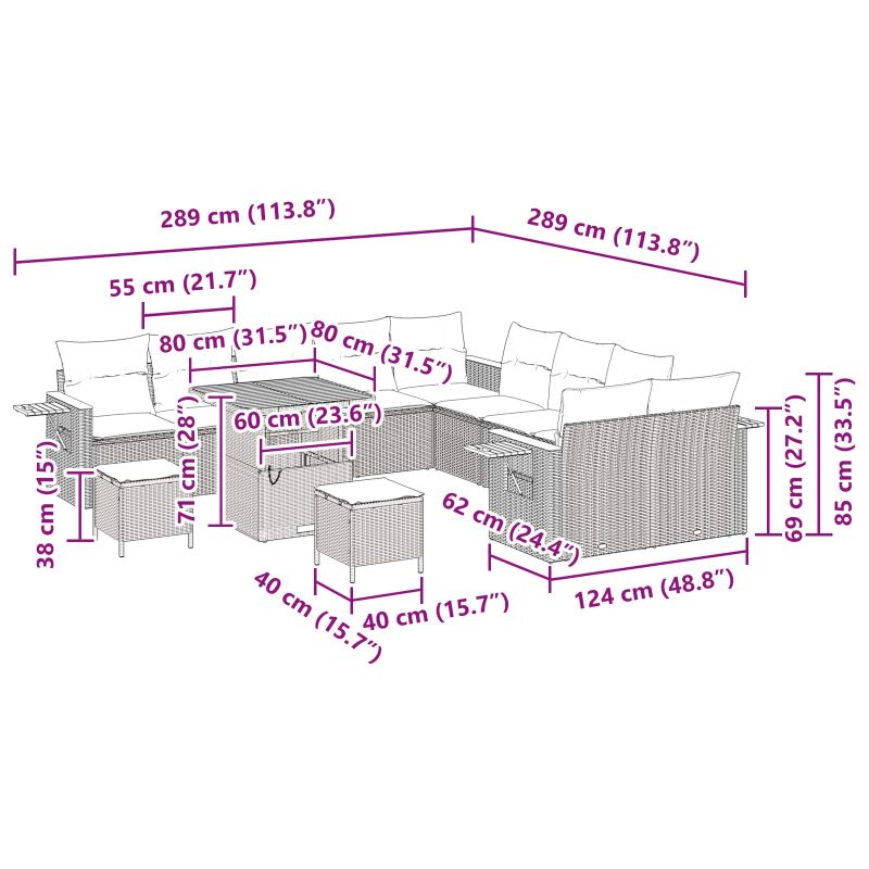 - Lieferumfang: Outdoor Sofaset mit Kissen