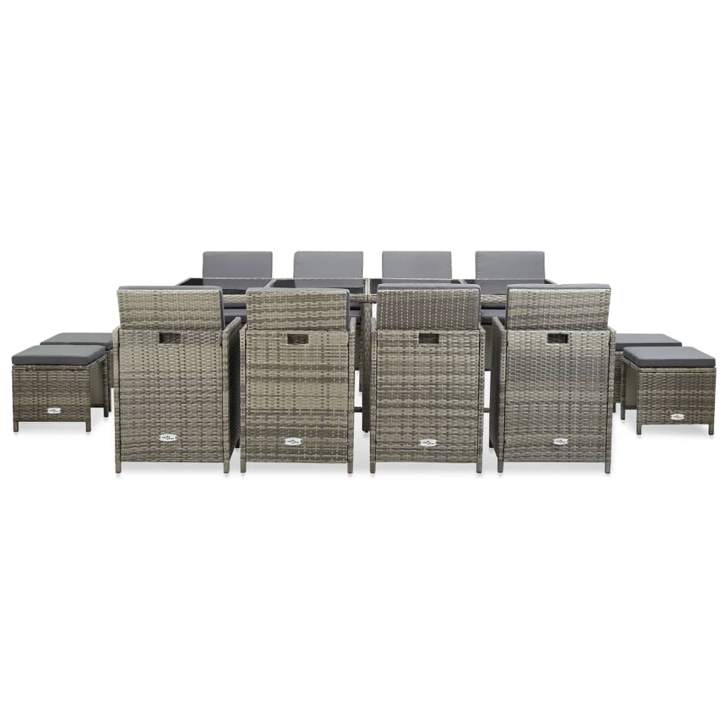 13-tlg. Garten-Essgruppe mit Auflagen Poly Rattan Grau