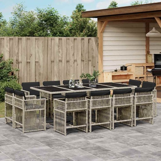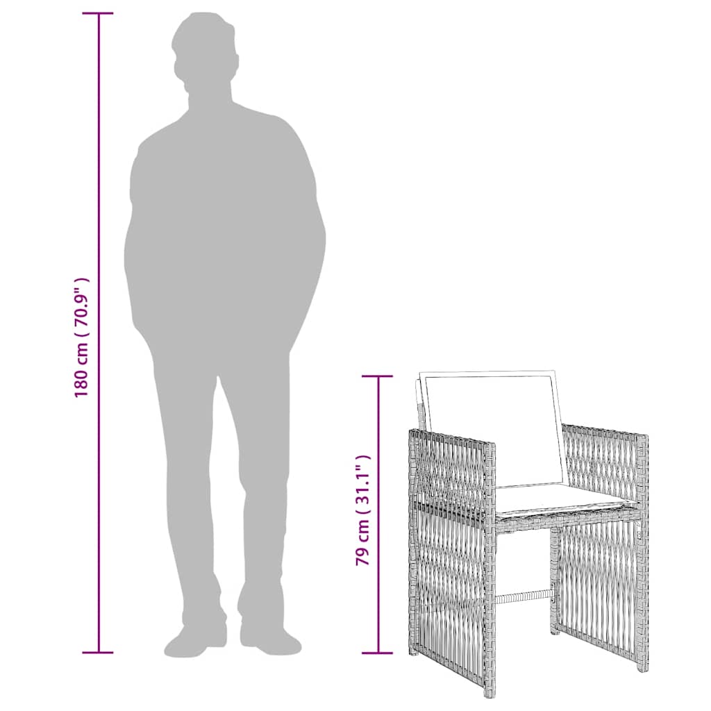 Diese Garten-Essgruppe ist eine ideale Wahl für Mahlzeiten im Freien oder einfach nur zum Entspannen im Garten, Hinterhof oder auf der Terrasse. Langlebiges Material: PE-Rattan, auch als Poly Rattan bekannt, ist ein robustes, pflegeleichtes synthetisches Material, das die Optik von natürlichem Rattan aufweist. Es kennzeichnet sich durch ein geringes Eigengewicht und lässt sich einfach reinigen. Aufgrund seiner Haltbarkeit und Witterungsbeständigkeit wird es häufig bei der Herstellung von Gartenmöbeln verwendet.Platzsparende Aufbewahrung: Dank der klappbaren Rückenlehnen lassen sich die Stühle unter dem Tisch verstauen, sodass die gesamte Essgruppe bei Nichtgebrauch eine platzsparende Würfelform bildet.Bequemes Sitzerlebnis: Dieser Gartensessel mit dick gepolsterten Kissen bietet ein angenehmes Sitzgefühl.Abnehmbarer und waschbarer Bezug: Die Sitzkissen verfügen über abnehmbare Bezüge, die sich ganz einfach waschen und reinigen lassen. Dank der Klappen an der Rückseite können die Kissen ganz einfach an den Rückenlehnen befestigt werden.Tischplatte aus Glas: Die Tischplatte des Gartentisches besteht aus starkem und langlebigem Hartglas, sodass sie leicht mit einem feuchten Tuch gereinigt werden kann und deinem Außenbereich einen Hauch von Eleganz verleiht. Gut zu wissen:Wir empfehlen dir, deine Gartenmöbel mit einer wasserdichten Hülle zu schützen, um lange Zeit eine ansprechende Optik aufzuweisen.