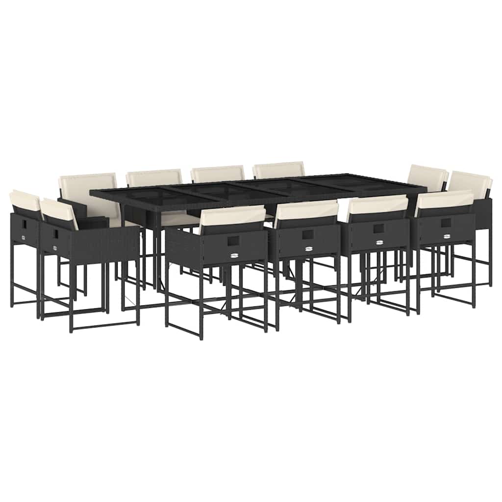 13-tlg. Garten-Essgruppe mit Kissen Schwarz Poly Rattan