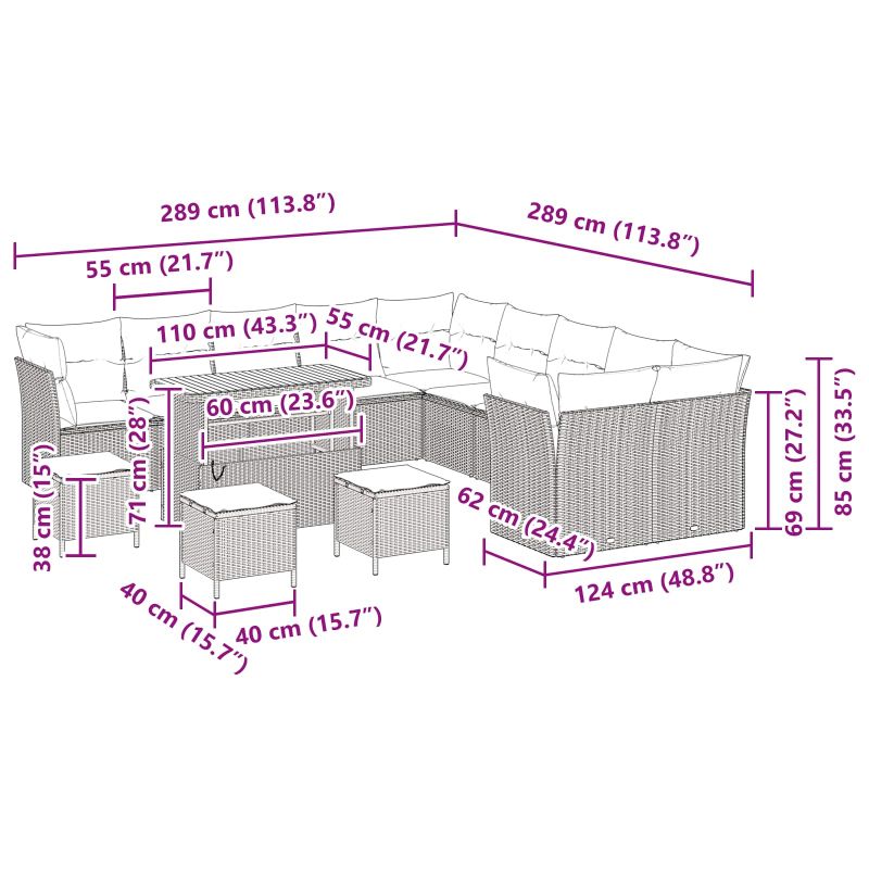 - Lieferumfang: 5 Teile: Sofa, Tisch und drei Hocker