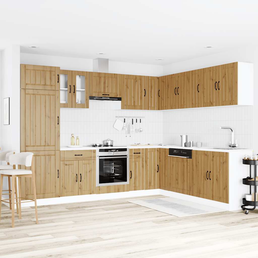 Mit ihrem eleganten Design optimiert diese 14-teilige Küchenzeile Ihre Küche und bietet reichlich Platz für Ihre Küchenausstattung! Starkes und langlebiges Material: Holzwerkstoff ist ein langlebiges und robustes Material mit einer glatten Oberfläche, das gegen Feuchtigkeit, Verformung und Rissbildung beständig ist, wodurch es eine zuverlässigen Wahl für die Herstellung von Möbeln ist.Viel Stauraum: Das Küchenschrank-Set hat viele Fächer und bietet ausreichend Platz für Schüsseln, Teller, Töpfe und andere Küchengeräte.Verstellbare Füße: Die Unterschränke sind mit verstellbaren Füßen ausgestattet, die sich in der Höhe an deine Kücheneinrichtung anpassen lassen.Pflegeleicht: Dank der glatten Oberfläche lassen sich diese Küchenschränke leicht mit einem feuchten Tuch reinigen und benötigen weniger Pflege. Achtung:Um ein Umkippen zu vermeiden, sollte dieses Produkt mit der mitgelieferten Wandhalterung gesichert werden. Gut zu wissen:Schrauben und Dübel für die Wandbefestigung sind nicht enthalten. Suchen und verwenden Sie die für Ihre Wände geeigneten Schrauben und Dübel. Wenn Sie unsicher sind, suchen Sie professionelle Hilfe. Lesen und befolgen Sie jeden Schritt der Anleitung sorgfältig.Die Arbeitsplatte, das Spülbecken und der Wasserhahn sind nicht im Lieferumfang enthalten.