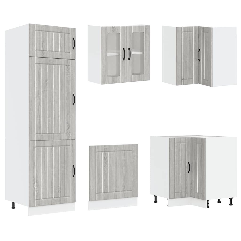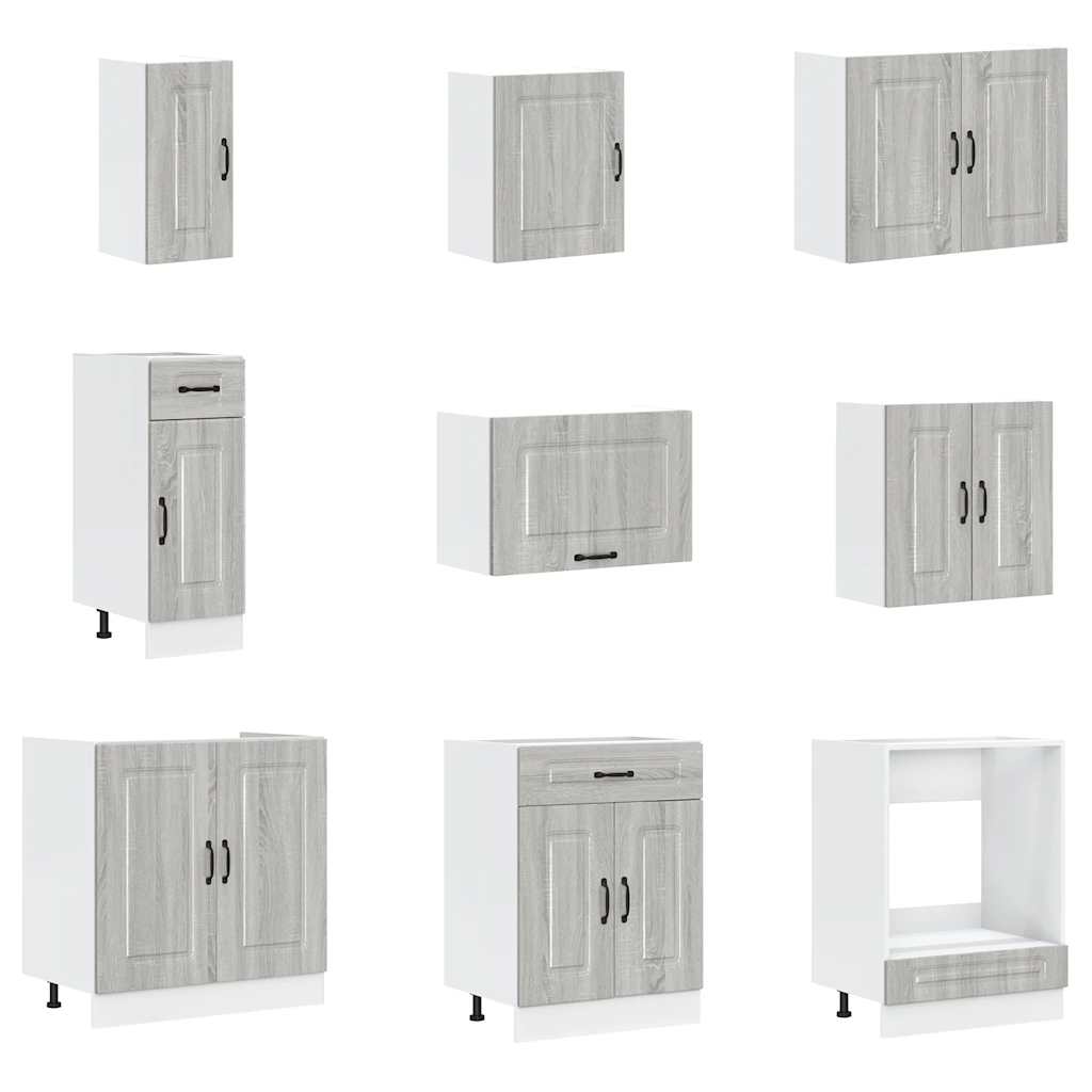 Mit ihrem eleganten Design optimiert diese 14-teilige Küchenzeile Ihre Küche und bietet reichlich Platz für Ihre Küchenausstattung! Starkes und langlebiges Material: Holzwerkstoff ist ein langlebiges und robustes Material mit einer glatten Oberfläche, das gegen Feuchtigkeit, Verformung und Rissbildung beständig ist, wodurch es eine zuverlässigen Wahl für die Herstellung von Möbeln ist.Viel Stauraum: Das Küchenschrank-Set hat viele Fächer und bietet ausreichend Platz für Schüsseln, Teller, Töpfe und andere Küchengeräte.Verstellbare Füße: Die Unterschränke sind mit verstellbaren Füßen ausgestattet, die sich in der Höhe an deine Kücheneinrichtung anpassen lassen.Pflegeleicht: Dank der glatten Oberfläche lassen sich diese Küchenschränke leicht mit einem feuchten Tuch reinigen und benötigen weniger Pflege. Achtung:Um ein Umkippen zu vermeiden, sollte dieses Produkt mit der mitgelieferten Wandhalterung gesichert werden. Gut zu wissen:Schrauben und Dübel für die Wandbefestigung sind nicht enthalten. Suchen und verwenden Sie die für Ihre Wände geeigneten Schrauben und Dübel. Wenn Sie unsicher sind, suchen Sie professionelle Hilfe. Lesen und befolgen Sie jeden Schritt der Anleitung sorgfältig.Die Arbeitsplatte, das Spülbecken und der Wasserhahn sind nicht im Lieferumfang enthalten.