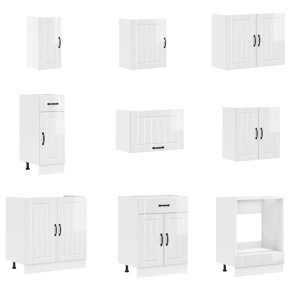 Mit ihrem eleganten Design optimiert diese 14-teilige Küchenzeile Ihre Küche und bietet reichlich Platz für Ihre Küchenausstattung! Starkes und langlebiges Material: Holzwerkstoff ist ein langlebiges und robustes Material mit einer glatten Oberfläche, das gegen Feuchtigkeit, Verformung und Rissbildung beständig ist, wodurch es eine zuverlässigen Wahl für die Herstellung von Möbeln ist.Viel Stauraum: Das Küchenschrank-Set hat viele Fächer und bietet ausreichend Platz für Schüsseln, Teller, Töpfe und andere Küchengeräte.Verstellbare Füße: Die Unterschränke sind mit verstellbaren Füßen ausgestattet, die sich in der Höhe an deine Kücheneinrichtung anpassen lassen.Pflegeleicht: Dank der glatten Oberfläche lassen sich diese Küchenschränke leicht mit einem feuchten Tuch reinigen und benötigen weniger Pflege. Achtung:Um ein Umkippen zu vermeiden, sollte dieses Produkt mit der mitgelieferten Wandhalterung gesichert werden. Gut zu wissen:Schrauben und Dübel für die Wandbefestigung sind nicht enthalten. Suchen und verwenden Sie die für Ihre Wände geeigneten Schrauben und Dübel. Wenn Sie unsicher sind, suchen Sie professionelle Hilfe. Lesen und befolgen Sie jeden Schritt der Anleitung sorgfältig.Die Arbeitsplatte, das Spülbecken und der Wasserhahn sind nicht im Lieferumfang enthalten.