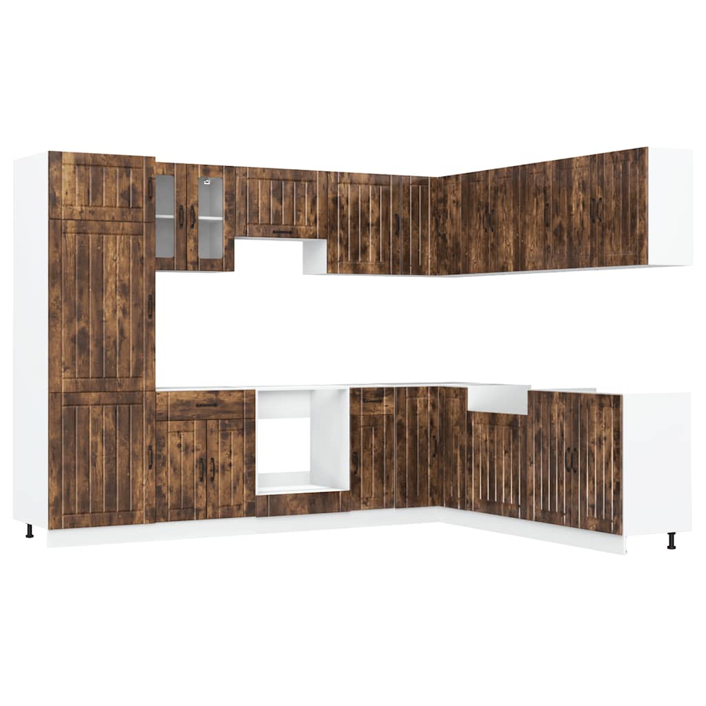 Mit ihrem eleganten Design optimiert diese 14-teilige Küchenzeile Ihre Küche und bietet reichlich Platz für Ihre Küchenausstattung! Starkes und langlebiges Material: Holzwerkstoff ist ein langlebiges und robustes Material mit einer glatten Oberfläche, das gegen Feuchtigkeit, Verformung und Rissbildung beständig ist, wodurch es eine zuverlässigen Wahl für die Herstellung von Möbeln ist.Viel Stauraum: Das Küchenschrank-Set hat viele Fächer und bietet ausreichend Platz für Schüsseln, Teller, Töpfe und andere Küchengeräte.Verstellbare Füße: Die Unterschränke sind mit verstellbaren Füßen ausgestattet, die sich in der Höhe an deine Kücheneinrichtung anpassen lassen.Pflegeleicht: Dank der glatten Oberfläche lassen sich diese Küchenschränke leicht mit einem feuchten Tuch reinigen und benötigen weniger Pflege. Achtung:Um ein Umkippen zu vermeiden, sollte dieses Produkt mit der mitgelieferten Wandhalterung gesichert werden. Gut zu wissen:Schrauben und Dübel für die Wandbefestigung sind nicht enthalten. Suchen und verwenden Sie die für Ihre Wände geeigneten Schrauben und Dübel. Wenn Sie unsicher sind, suchen Sie professionelle Hilfe. Lesen und befolgen Sie jeden Schritt der Anleitung sorgfältig.Die Arbeitsplatte, das Spülbecken und der Wasserhahn sind nicht im Lieferumfang enthalten.