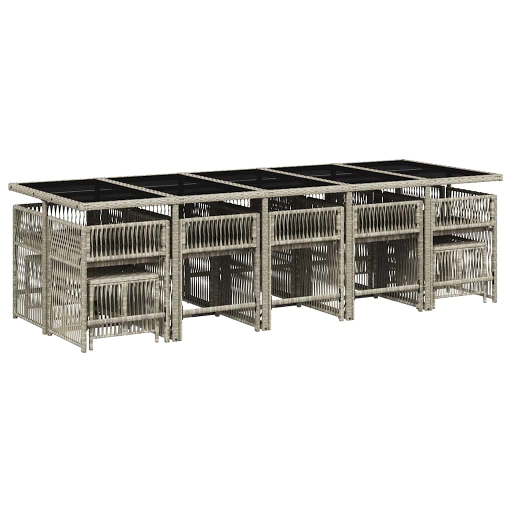 Diese Garten-Essgruppe ist eine ideale Wahl für Mahlzeiten im Freien oder einfach nur zum Entspannen im Garten, Hinterhof oder auf der Terrasse. Langlebiges Material: PE-Rattan, auch als Poly Rattan bekannt, ist ein robustes, pflegeleichtes synthetisches Material, das die Optik von natürlichem Rattan aufweist. Es kennzeichnet sich durch ein geringes Eigengewicht und lässt sich einfach reinigen. Aufgrund seiner Haltbarkeit und Witterungsbeständigkeit wird es häufig bei der Herstellung von Gartenmöbeln verwendet.Platzsparende Aufbewahrung: Dank der klappbaren Rückenlehnen lassen sich die Stühle unter dem Tisch verstauen, sodass die gesamte Essgruppe bei Nichtgebrauch eine platzsparende Würfelform bildet.Bequemes Sitzerlebnis: Dieser Gartensessel mit dick gepolsterten Kissen bietet ein angenehmes Sitzgefühl.Abnehmbarer und waschbarer Bezug: Die Sitzkissen verfügen über abnehmbare Bezüge, die sich ganz einfach waschen und reinigen lassen. Dank der Klappen an der Rückseite können die Kissen ganz einfach an den Rückenlehnen befestigt werden.Tischplatte aus Glas: Die Tischplatte des Gartentisches besteht aus starkem und langlebigem Hartglas, sodass sie leicht mit einem feuchten Tuch gereinigt werden kann und deinem Außenbereich einen Hauch von Eleganz verleiht. Gut zu wissen:Wir empfehlen dir, deine Gartenmöbel mit einer wasserdichten Hülle zu schützen, um lange Zeit eine ansprechende Optik aufzuweisen.