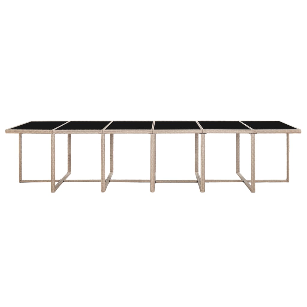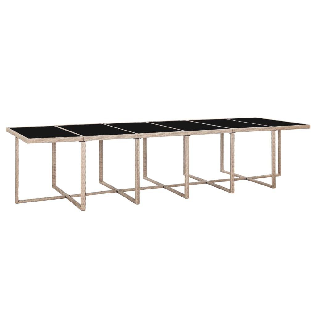 Dank des Stahlrahmens, des stilvollen Designs und der langlebigen Qualität ist diese Rattan-Sitzgarnitur die perfekte Wahl für Ihren Außenwohnbereich. Es bietet eine komfortable Sitzgelegenheit zum Abendessen mit der Familie, zum Lesen oder Ausruhen. Die Stahlrahmen sorgen für Robustheit und Stabilität, während das witterungsbeständige und wasserfeste PE-Rattan die Reinigung dieser Essgruppe erleichtert. Alle Möbelstücke sind leichtgewichtig, so dass sie einfach verstellt werden können. Die abnehmbaren, dick gepolsterten Sitz- und Rückenkissen bieten ultimativen Sitzkomfort. Wenn nicht in Gebrauch, können die Hocker unter die Stühle, welche wiederum unter den Tisch gestellt werden können - somit wird viel Platz gespart! Lieferumfang umfasst: 1 Tisch mit Glasplatte, 12 Rattan-Stühle, 4 Hocker und 28 abnehmbare Kissen. Hinweis: Wir empfehlen, das Set bei Regen, Schnee und Frost abzudecken, um eine lange Lebensdauer zu gewährleisten.