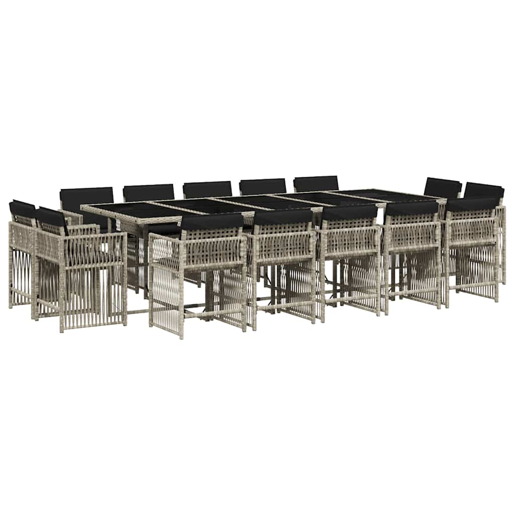 Diese Garten-Essgruppe ist eine ideale Wahl für Mahlzeiten im Freien oder einfach nur zum Entspannen im Garten, Hinterhof oder auf der Terrasse. Langlebiges Material: PE-Rattan, auch als Poly Rattan bekannt, ist ein robustes, pflegeleichtes synthetisches Material, das die Optik von natürlichem Rattan aufweist. Es kennzeichnet sich durch ein geringes Eigengewicht und lässt sich einfach reinigen. Aufgrund seiner Haltbarkeit und Witterungsbeständigkeit wird es häufig bei der Herstellung von Gartenmöbeln verwendet.Platzsparende Aufbewahrung: Dank der klappbaren Rückenlehnen lassen sich die Stühle unter dem Tisch verstauen, sodass die gesamte Essgruppe bei Nichtgebrauch eine platzsparende Würfelform bildet.Bequemes Sitzerlebnis: Dieser Gartensessel mit dick gepolsterten Kissen bietet ein angenehmes Sitzgefühl.Abnehmbarer und waschbarer Bezug: Die Sitzkissen verfügen über abnehmbare Bezüge, die sich ganz einfach waschen und reinigen lassen. Dank der Klappen an der Rückseite können die Kissen ganz einfach an den Rückenlehnen befestigt werden.Tischplatte aus Glas: Die Tischplatte des Gartentisches besteht aus starkem und langlebigem Hartglas, sodass sie leicht mit einem feuchten Tuch gereinigt werden kann und deinem Außenbereich einen Hauch von Eleganz verleiht. Gut zu wissen:Wir empfehlen dir, deine Gartenmöbel mit einer wasserdichten Hülle zu schützen, um lange Zeit eine ansprechende Optik aufzuweisen.