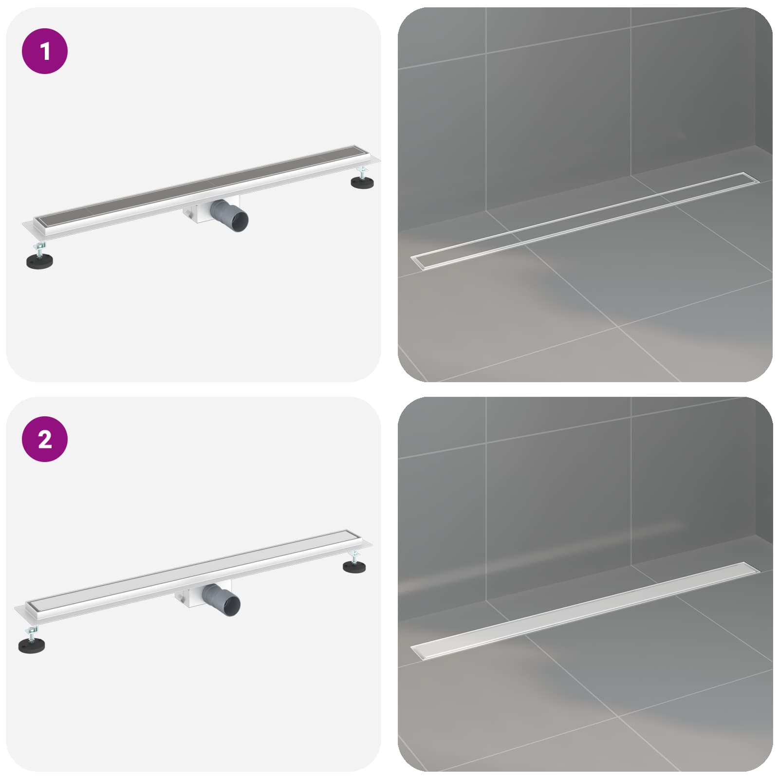 Diese moderne Duschrinne bringt Stil und Funktionalität zusammen und passt perfekt in jedes moderne Badezimmer. Ihr elegantes, rechteckiges Design aus Edelstahl macht sie praktisch und ansprechend und trägt zu einer spa-ähnlichen Stimmung in deinem Badezimmer bei. Höhenverstellbares Design Die Duschrinne hat eine höhenverstellbare Funktion von 0 bis 30 mm, die eine präzise Anpassung an verschiedene Bodenhöhen ermöglicht. Damit passt sie sich perfekt an unterschiedliche Badezimmerlayouts an und hilft dir bei unebenen Flächen oder Designänderungen. Edelstahlkonstruktion Diese Robuste Duschrinne aus Edelstahl 304 bietet außergewöhnliche Langlebigkeit. Die polierte Oberfläche gibt deinem Badezimmer einen modernen Look und sorgt dafür, dass sie lange hält. Rechteckige Form für optimiertes Entwässern Mit ihrem rechteckigen Design sieht die Rinne nicht nur gut aus, sondern sorgt auch für einen besseren Wasserfluss und vermindert Wasseransammlungen in der Dusche. So bleibt dein Badezimmer sauber und hygienisch. Umfangreiche Komponenten enthalten Geliefert mit super passenden Teilen wie einem höhenverstellbaren Fuß für Stabilität, einem wasserdichten Tuch für Schutz und einem Kunststoffrohr für volle Funktionalität. Diese Komponenten sind aufeinander abgestimmt und sorgen für eine einfache Montage. Einfache Montage Mit ein paar einfachen Handgriffen und nur einem Schraubendreher und einer Schere ist die Montage schnell erledigt. Jeder kann das alleine machen, sodass du ruckzuck dein verbessertes Badezimmer genießen kannst.