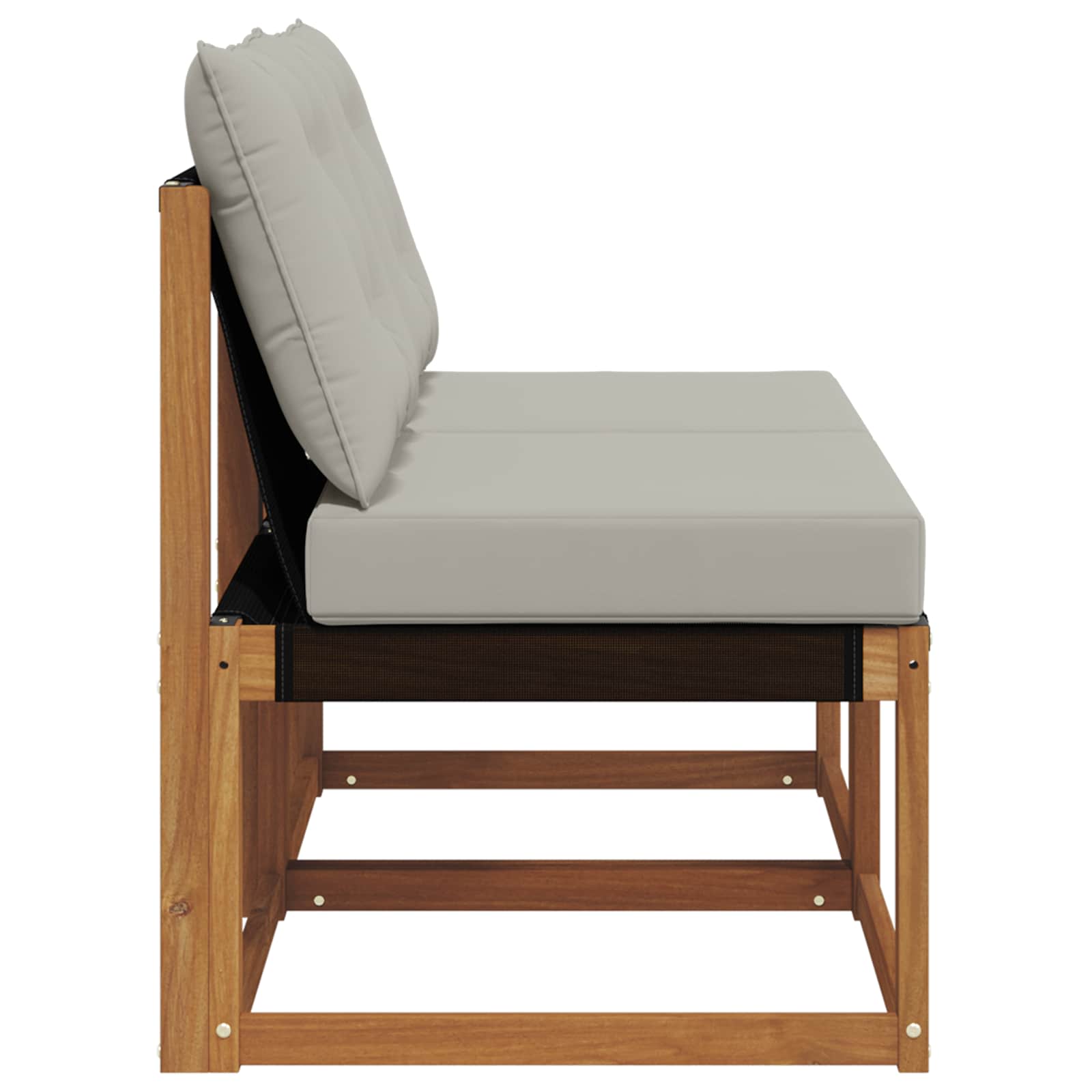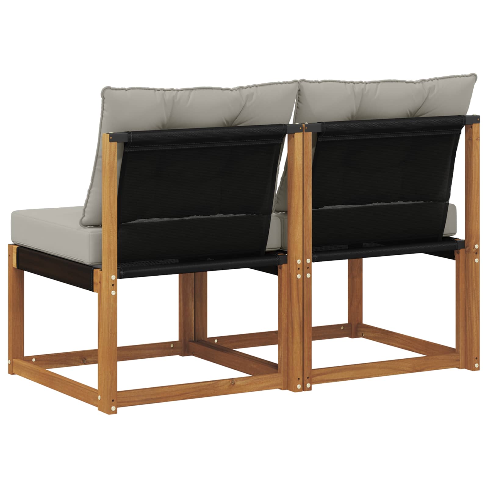 Dieses Gartenmöbelset hat das Potenzial, jeden Balkon, Garten oder Terrasse in einen stylishen und komfortablen Entspannungsort zu verwandeln. Egal ob zum Relaxen oder für gesellige Zusammenkünfte im Freien – es bietet dir die ideale Lösung. Mit einem modernen, minimalistischen Look passt es in verschiedenste Außenbereiche und setzt stylische Akzente. Mit viel Liebe zum Detail gefertigt, bringt es Eleganz und Komfort in dein Zuhause. Massivholz Akazienrahmen Aus robustem Akazienholz, das für seine lange Lebensdauer bekannt ist, sorgt dieses Sofa für starken Halt und eine lange Nutzung. Die natürliche Holzfarbe ergänzt jede Gartenumgebung auf perfekte Weise und ist eine praktische und schicke Wahl für deinen Balkon oder deine Terrasse. Bequeme Kissen Jedes Modul kommt mit hochwertigen Polyesterkissen, die für deinen Komfort und eine lange Haltbarkeit sorgen. Der Stoff ist angenehm weich und hält den Witterungsbedingungen stand. Die leichte Schaumfüllung sorgt für optimalen Sitzkomfort, auch wenn du lange sitzt. Modularer und flexibler Entwurf Mit seinem modularen Design bietet dieses Produkt viele Gestaltungsmöglichkeiten, die sich an verschiedene Raumgrößen und Bedürfnisse anpassen lassen. So kannst du die perfekte Anordnung schaffen, egal ob für einen kleinen Bereich oder eine große gesellige Runde. Wetterbeständig Ideal für Garten und Terrasse, bietet das Möbel wetterfeste Eigenschaften. Die strukturierten Oberflächen lassen Luft zirkulieren und helfen dem Holz schneller zu trocknen, wodurch es bequem und langlebig bleibt. Farb- und lichtbeständiger Stoff Der Textilene-Stoff ist so gestaltet, dass er Sonneneinstrahlung widersteht und seine lebendigen Farben lange behält. Seine robuste Oberfläche ist resistent gegen Verblassen, sodass du lange Freude daran hast, selbst im Freien.