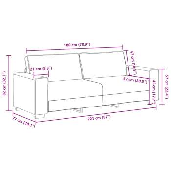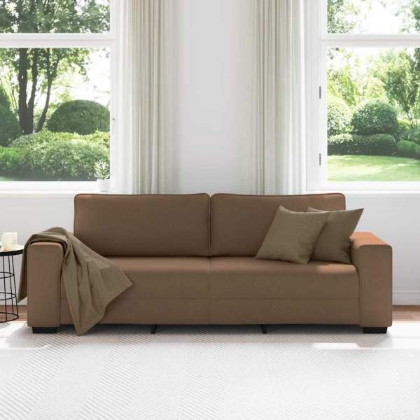 Dieses 3-Sitzer-Sofa bietet einen ausgezeichneten Platz zum Plaudern, Lesen, Fernsehen oder einfach nur zum Entspannen. Es wird ein echter Blickfang in deinem Zuhause sein. Weiches und strapazierfähiges Material: Polyestergewebe fühlt sich weich an, ist atmungsaktiv sowie strapazierfähig und sorgt so für höchsten Komfort und Behaglichkeit.Robustes und stabiles Gestell: Der Holz- und Metallgestell des Loungesofas sorgt für Robustheit und Stabilität.Breite Armlehnen: Die breiten Armlehnen bieten stabilen Halt und großzügigen Platz für alles, vom Handy bis zur Schüssel mit Filmsnacks, und sie sind auch bequem genug, um den Kopf darauf abzulegen, wenn du dich für ein Nickerchen hinlegst.Komfortables Sitzgefühl: Das Polstersofa kommt mit der dick gepolsterten Sitz- und Rückenlehne sowie Armlehnen für hohen Komfort.Vielseitig einsetzbar: Dieses Sofa eignet sich perfekt für Wohnzimmer, Büros und Gästezimmer. Es passt sich mühelos an verschiedene Umgebungen an und ist somit eine praktische Ergänzung für jedes Zuhause oder Büro.