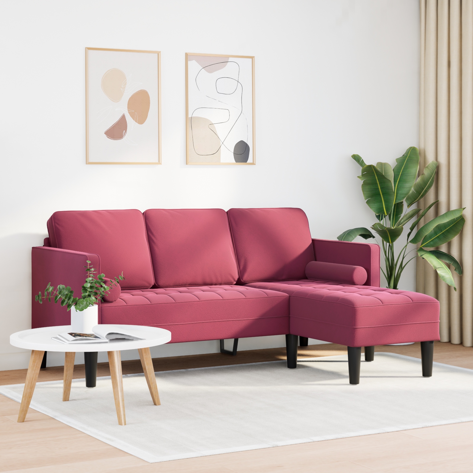Dieses weinrote Chaiselongue-Sofa ist die perfekte Ergänzung für jedes Zuhause, bei dem Komfort im Vordergrund steht. Aus robusten Materialien und echtem Holz gefertigt, sieht es nicht nur gut aus, sondern bringt auch eine gemütliche Atmosphäre in dein Zuhause. Ideal für Gäste oder einfach zum Relaxen. Dieses Chaiselongue-Sofa hat eine coole weinrote Polsterung, die jeden Raum aufpeppen kann. Die eleganten Linien und das schicke Design verleihen ihm einen modernen Look, perfekt für stylische Wohnbereiche. Entwickelt; um flexibel zu sein – die Chaiselongue lässt sich anpassen, damit sie perfekt in dein Zuhause passt und dir maximalen Sitzkomfort bietet. Komfort wird großgeschrieben mit den weichen, gesteppte Kissen und gepolsterten Armlehnen, die jedes Sitzen zu einem gemütlichen Erlebnis machen. Es bietet Platz für 3 Personen, ideal für Familientreffen oder gemütliche Runden mit Freunden, damit jeder entspannen kann. Hergestellt aus hochwertigem Polyesterstoff, der langlebig und bequem ist, bleibt es stylisch und robust mit einer glatten Oberfläche.