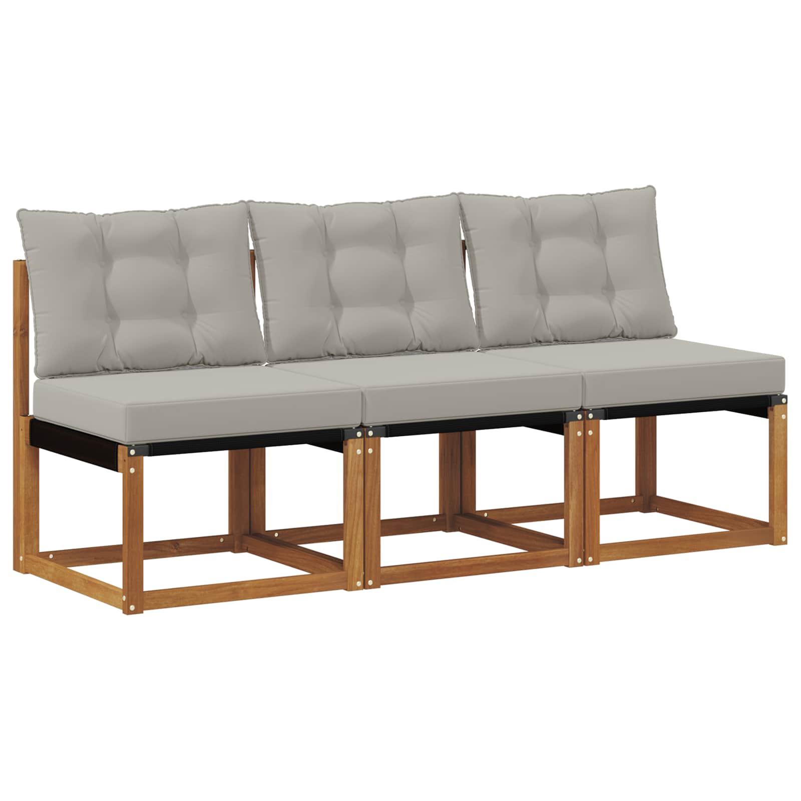 Dieses Gartenmöbelset hat das Potenzial, jeden Balkon, Garten oder Terrasse in einen stylishen und komfortablen Entspannungsort zu verwandeln. Egal ob zum Relaxen oder für gesellige Zusammenkünfte im Freien – es bietet dir die ideale Lösung. Mit einem modernen, minimalistischen Look passt es in verschiedenste Außenbereiche und setzt stylische Akzente. Mit viel Liebe zum Detail gefertigt, bringt es Eleganz und Komfort in dein Zuhause. Massivholz Akazienrahmen Aus robustem Akazienholz, das für seine lange Lebensdauer bekannt ist, sorgt dieses Sofa für starken Halt und eine lange Nutzung. Die natürliche Holzfarbe ergänzt jede Gartenumgebung auf perfekte Weise und ist eine praktische und schicke Wahl für deinen Balkon oder deine Terrasse. Bequeme Kissen Jedes Modul kommt mit hochwertigen Polyesterkissen, die für deinen Komfort und eine lange Haltbarkeit sorgen. Der Stoff ist angenehm weich und hält den Witterungsbedingungen stand. Die leichte Schaumfüllung sorgt für optimalen Sitzkomfort, auch wenn du lange sitzt. Modularer und flexibler Entwurf Mit seinem modularen Design bietet dieses Produkt viele Gestaltungsmöglichkeiten, die sich an verschiedene Raumgrößen und Bedürfnisse anpassen lassen. So kannst du die perfekte Anordnung schaffen, egal ob für einen kleinen Bereich oder eine große gesellige Runde. Wetterbeständig Ideal für Garten und Terrasse, bietet das Möbel wetterfeste Eigenschaften. Die strukturierten Oberflächen lassen Luft zirkulieren und helfen dem Holz schneller zu trocknen, wodurch es bequem und langlebig bleibt. Farb- und lichtbeständiger Stoff Der Textilene-Stoff ist so gestaltet, dass er Sonneneinstrahlung widersteht und seine lebendigen Farben lange behält. Seine robuste Oberfläche ist resistent gegen Verblassen, sodass du lange Freude daran hast, selbst im Freien.