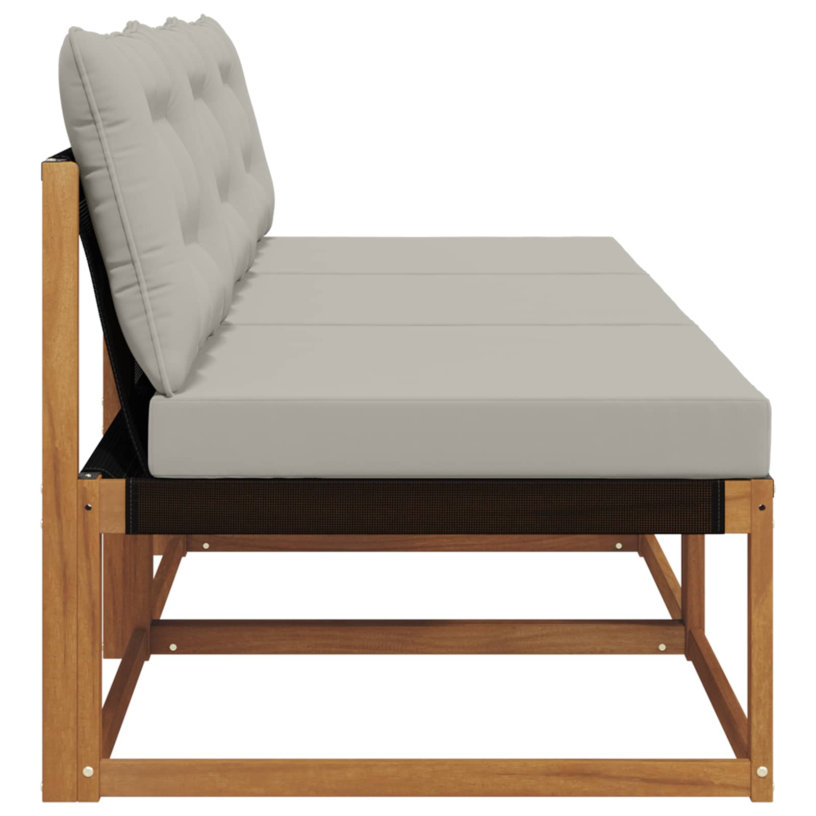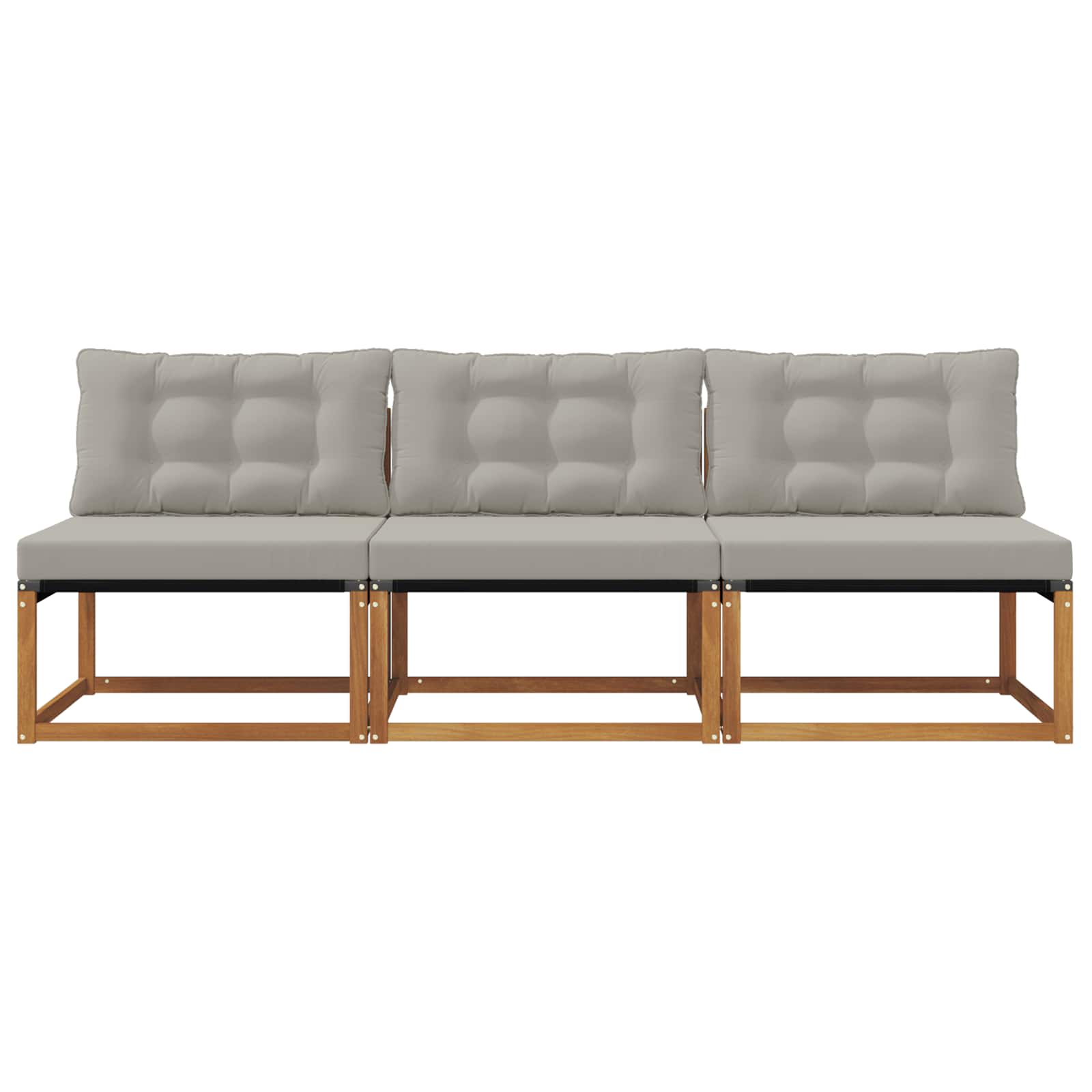 Dieses Outdoor-Möbelset macht jede Terrasse, jeden Balkon oder Garten zu einer coolen und bequemen Chill-Zone. Perfekt für entspannte Stunden oder gesellige Abende im Freien! Das moderne, minimalistische Design passt zu fast jedem Außenbereich und bringt Stil und Gemütlichkeit in dein Leben. Mit viel Liebe zum Detail gefertigt, zieht das Set alle Blicke auf sich und sorgt für entspannte Momente mit Stil. Massives Akazienholzgestell - Dieses Sofa ist aus starkem Akazienholz gemacht, das für seine Langlebigkeit und Witterungsbeständigkeit bekannt ist. So kannst du sicher sein, dass es stabil und langlebig ist. Der natürliche Holzton passt super zu deiner Außendekoration. Bequeme Kissen - Jedes modulare Stück hat weiche Kissen aus hochwertigem Polyester, die für Komfort und Langlebigkeit sorgen. Der Stoff ist angenehm weich und trotzdem robust für den Außenbereich. Mit leichtem Schaumstoff bekommst du den perfekten Sitzkomfort. Modulares und flexibles Design - Dank des modularen Formats kannst du das Sofa ganz nach deinen Wünschen anordnen. Ob du es kompakt oder breit haben willst – alles ist möglich! Wetterbeständig - Die Möbel sind perfekt für draußen geeignet! Die gelattete Oberfläche sorgt dafür, dass Wasser schnell abfließt und das Holz schneller trocknet, damit sie lange gut aussieht. Farb- und lichtbeständiger Stoff - Der Textilene-Stoff widersteht der Sonneneinstrahlung und bleibt auch nach langer Zeit schön bunt. Seine strapazierfähige Oberfläche sieht auch nach vielen Sonnenstunden toll aus und hält super lange.