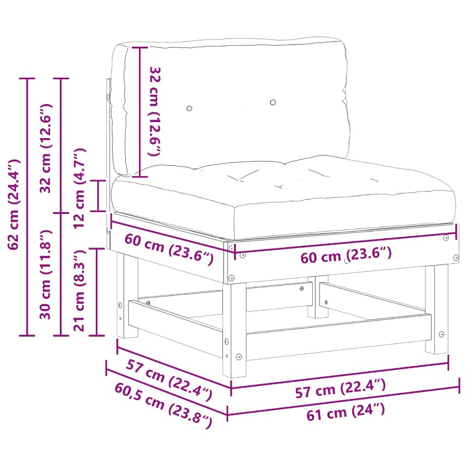 3 Stück Sectional Sofa Einheiten Massivholz Kiefer Wachsbraun