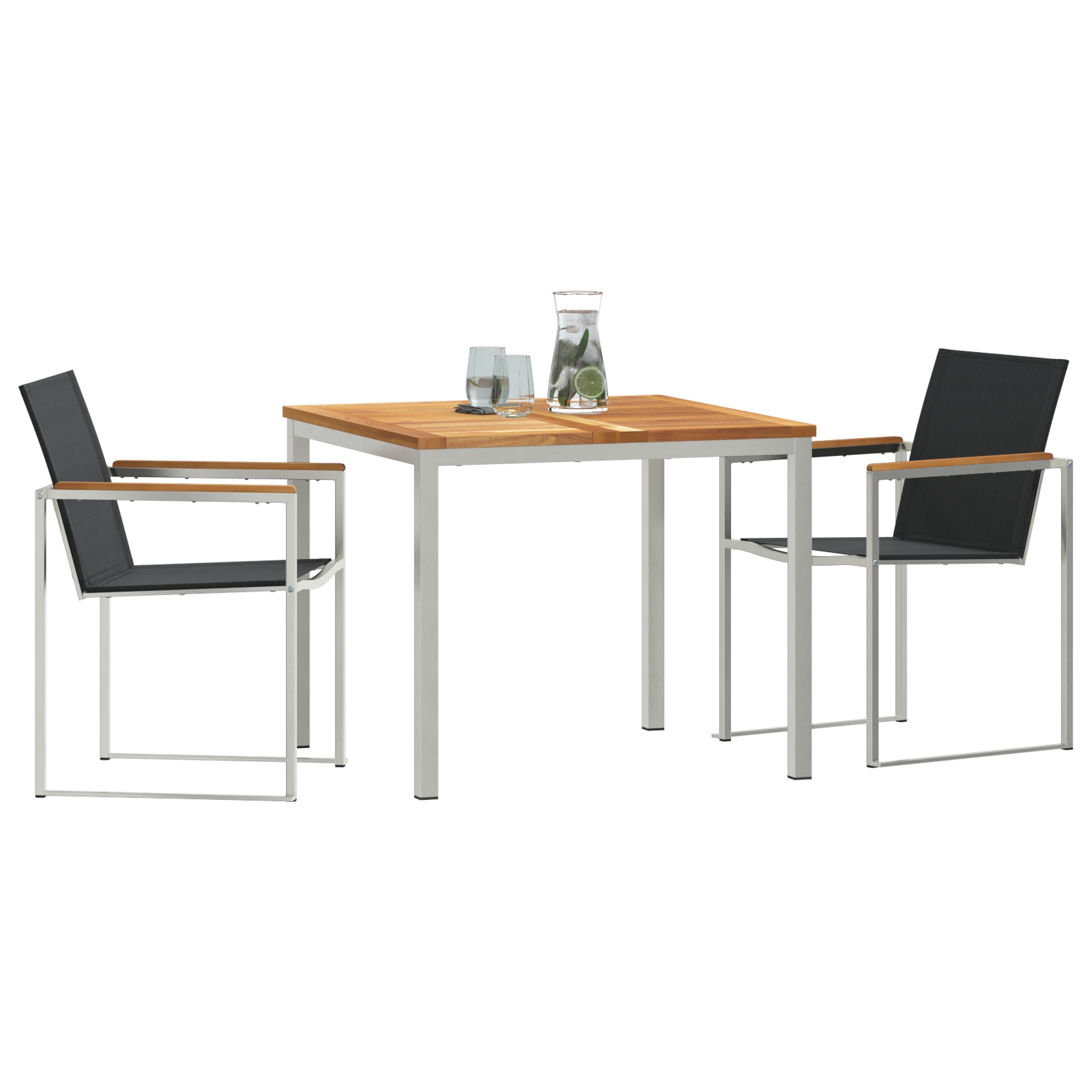 Dieses Garten Essset ist perfekt für Mahlzeiten im Freien und kommt mit einem schicken quadratischen Tisch aus massivem Teakholz und zwei stylischen Stühlen. Es vereint hochwertige Materialien mit elegantem Design und ist eine praktische Wahl für jeden Balkon oder Garten. Dieses Essset für draußen verbindet natürliches Teakholz mit modernem Design, das perfekte Highlight für deine Treffen im Freien. Dank stabiler Bauweise hält die Möbelgruppe jedem Wetter stand, sodass sie dir jahrelang gute Dienste leistet. Die bequemen Teakholz-Sitze der Stühle bieten tollen Komfort und Unterstützung, damit du lange Mahlzeiten an warmen Tagen genießen kannst. Die quadratische Form spart Platz und passt super in kleinere Außenbereiche, ohne Stil oder Funktionalität zu verlieren. Ideal für gemeinsame Essen mit Freunden oder Familie, verleiht dieses Set deinem Garten, Balkon oder deiner Terrasse einen besonderen Flair.