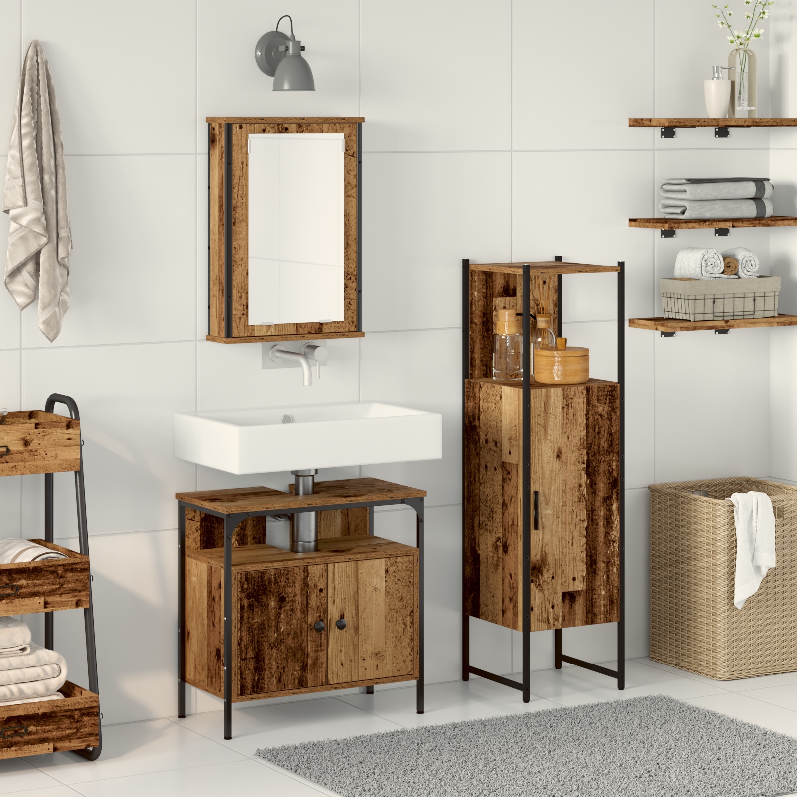 Dieses Badezimmermöbelset verbindet Praktikabilität mit rustikalem Stil und passt perfekt in jedes Badezimmer. Es hat eine stylische verwitterte Holzoberfläche und enthält einen hohen Schrank, einen Wandschrank und einen Waschtischschrank, die viel Stauraum bieten und gleichzeitig gut aussehen. Rustikale Eleganz: Die verwitterte Oberfläche verleiht jedem Stück einen einzigartigen Look, der gut zu verschiedenen Badezimmerstilen passt und Wärme hinzufügt, während es super praktisch bleibt. Viel Stauraum: Mit viel Stauraum, einschließlich Schränken und Regalen, ist es ein Kinderspiel, Ordnung zu halten. Jeder Schrank hat verstellbare Regale, perfekt für unterschiedliche Aufbewahrungsbedürfnisse. Robuste Konstruktion: Holzwerkstoff und Metall bieten Langlebigkeit und Unterstützung für das, was du brauchst, und machen es zu einer zuverlässigen Wahl für den Alltag. Vielseitiger Einsatz: Ideal für Badezimmer jeder Größe passt sich dieses Set gut an und hält Toilettenartikel, Handtücher und mehr, und hilft, Chaos in stilvolle Aufbewahrung zu verwandeln. Einfache Montage: Jedes Teil kommt mit klaren Anweisungen und benötigt nur minimale Werkzeuge, was es zu einem unkomplizierten Projekt für jeden macht, der seinen Raum aufpeppen möchte.