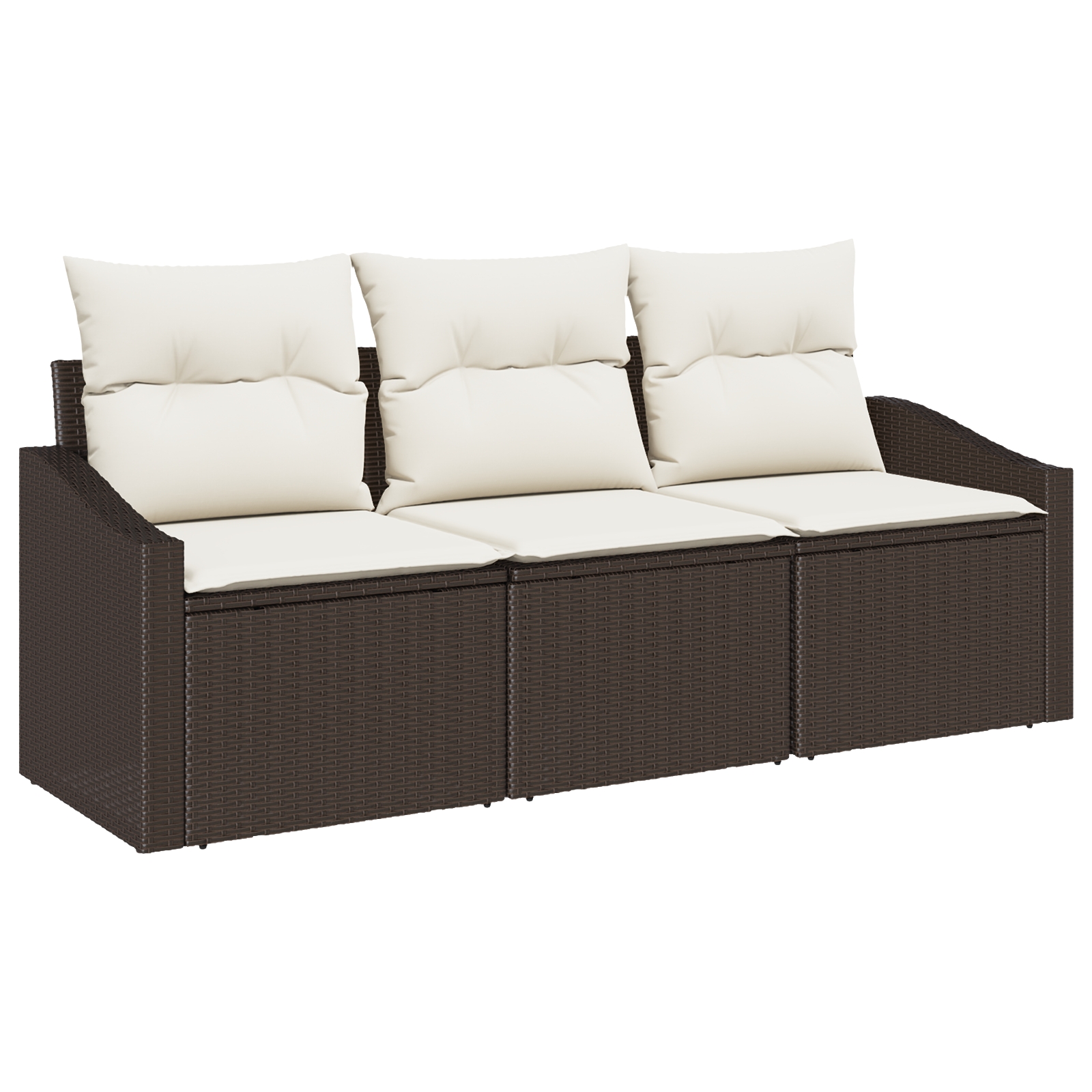 Dieses 3-teilige Garten Essset kombiniert Stil und Funktionalität und bringt frischen Wind in deine Außenbereiche. Es ist für den Außeneinsatz konzipiert und hat eine moderne Ausstrahlung, bequeme Kissen und robuste Materialien – ideal für Essen oder Entspannen im Garten oder auf dem Balkon. Haltbarkeit: Aus robustem Poly Rattan gefertigt, hält dieses Essset allen Witterungen stand und bleibt jahrelang in deinem Garten schön. Die UV-beständigen Eigenschaften sorgen dafür, dass die Farbe nicht verblasst, auch bei Sonnenschein. Komfort: Jedes Sitzstück hat ein plüschiges, abnehmbares Polyesterkissen, das mit Reißverschlüssen ausgestattet ist und die Reinigung sehr einfach macht. Diese Kissen sind auf Komfort ausgelegt und perfekt für lange Mahlzeiten mit Freunden und Familie. Stylisches Design: Mit einer modernen rechteckigen Form und einem stylischen Braun-und-Crea-Farbschema wertet dieses Essset deinen Außenbereich auf. Die Rattan Struktur gibt einen Hauch von Stil und passt gut zu verschiedenen Gartenstilen. Vielseitige Nutzung: Ideal für Outdoor Dining oder entspannte Treffen, bietet dieses Set bequem Platz für drei Personen und ist perfekt für kleine Familienessen oder um Freunde zu bewirten. Sein modernes Design verbessert Patios, Balkone oder Gärten. Einfache Pflege: Die Pflege dieses Outdoor Sofa Sets ist ganz leicht. Mit warmem Wasser abwischen und scharfe Chemikalien meiden, um den Kissenstoff in Schuss zu halten und Witterungsschäden zu vermeiden.