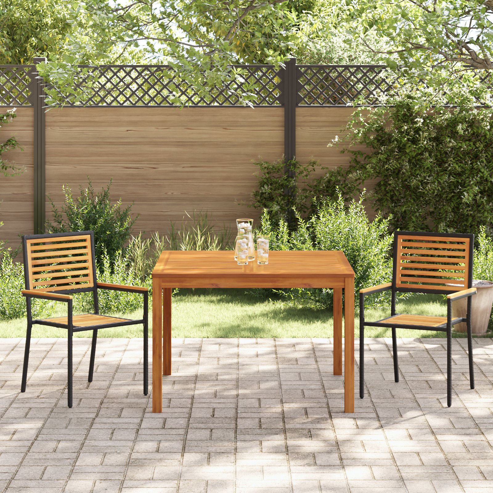 Dieses beeindruckende Garten-Essset verbindet modernen Stil mit Praktikabilität und ist perfekt, um deine Außenbereiche zu genießen. Mit einem rechteckigen Tisch und zwei schicken Stühlen, gefertigt aus massivem Akazienholz und einem schwarzen Eisenrahmen, bietet es Robustheit und Eleganz – egal ob du isst oder entspannst. Materialzusammensetzung: Die Möbel haben eine massive Akazienholzplatte, die natürliche Schönheit und Stärke kombiniert. Der pulverbeschichtete Eisenrahmen macht sie wetterfest und langlebig. Vielseitige Nutzung: Perfekt für unterschiedliche Außenbereiche, egal ob kleiner Balkon oder große Terrasse. Super für Essen, Kaffeepausen oder einfach zum Quatschen mit Freunden. Design: Der moderne Look verbindet Naturholz und schwarze Elemente, die deine Außenansicht echt aufwerten. Die glatte Oberfläche und die klaren Linien wirken richtig schick. Stapelbar: Die Stühle lassen sich leicht stapeln und sparen Platz, was für kleinere Räume ideal ist, ohne auf Stil zu verzichten. Einfache Montage: Das Essset kommt mit einer verständlichen Anleitung, damit du deinen Außenbereich im Handumdrehen mit nur einem Schraubendreher fertigstellen kannst.